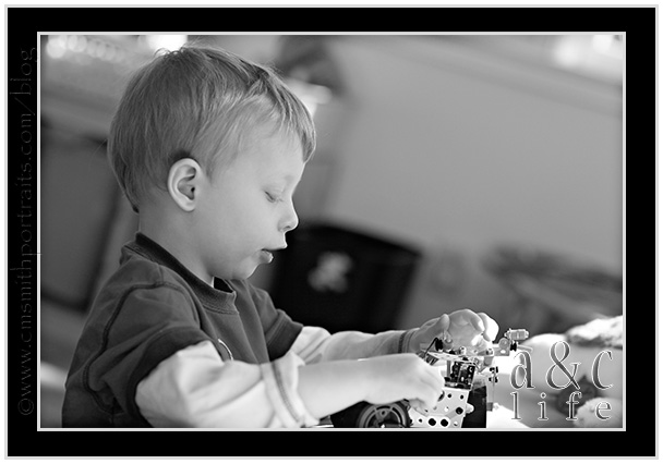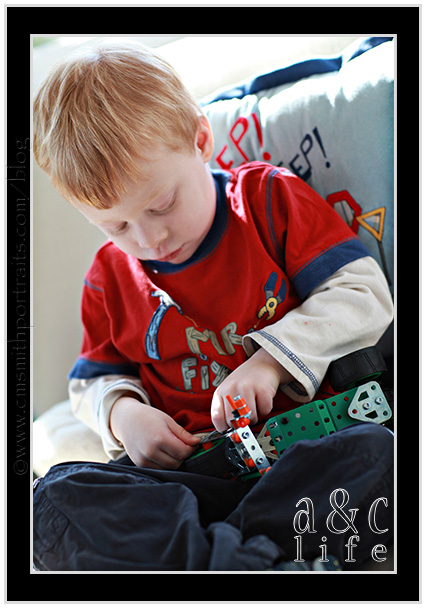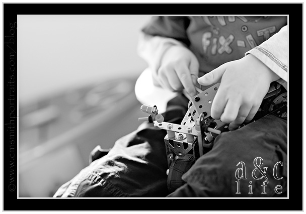 He was SOOO missing Mak! But he kept himself occupied with the erector set…