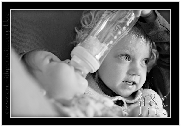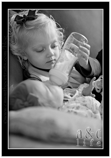 And finally bottle time for Caroline. Clara Beth LOVES feeding Caroline her bottle!