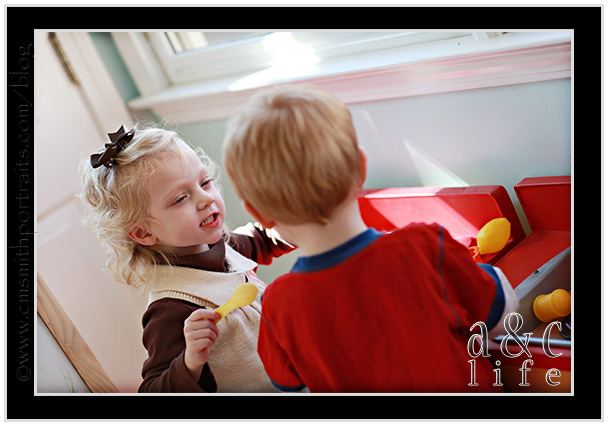 This past weekend we attended our state’s Professional Photographer’s Convention. It was amazing. Great speakers, great trade show and great friends that we don’t see nearly enough. We came home Sunday night so I could do the whole school thing with Mak and CB, though. And Collin drove back to Columbia for classes Monday and Tuesday. Which meant I was alone with the kids all day long. I missed him. But here’s what we did…