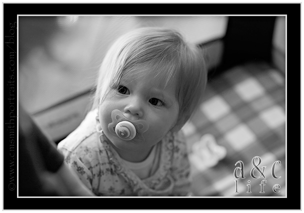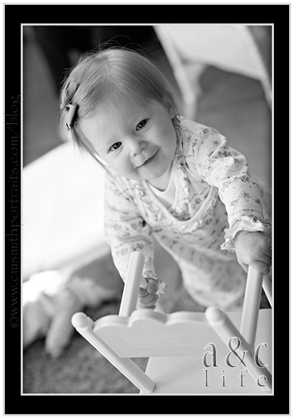 She’s growing WAY too fast. This is the teeny baby of the family…pulling up. She made it all the way to standing, I was just too much of a Nervous Nellie to capture it all. Not half a second after I took this one I put the camera down to go stand guard. I shouldn’t have worried. She’s a pro. 🙂