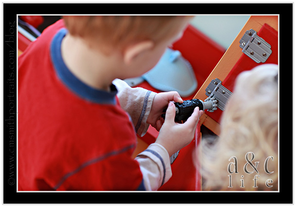 Awww, I love these a-day-in-the-life-of pictures! The whole Mr. Fix-it vs. Little Miss Homemaker exchange is hilarious! Thanks for sharing!