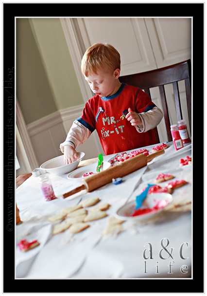 And then I decided to make sugar cookies from scratch with them when Mak got home from school. That’s not something e do often. I’m not a fan of huge flour/icing/sprinkles messes. And the kitchen was a MESS after this. But a fun mess…