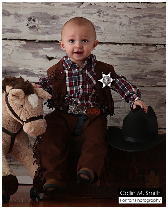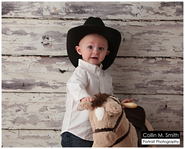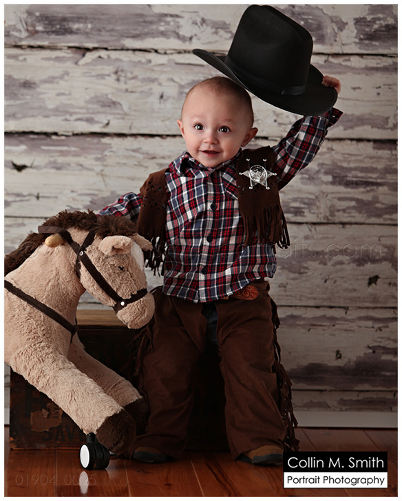 Oh my goodness, we have LOTS of one year olds coming in these days! I can’t believe that all of these little ones who were SOOOO teeny just a year ago are now learning to walk and talk. This is such a fun, but BUSY, stage in parenting. Sweet Wyatt is having a cowboy party for his first birthday and along with his One Year portrait his mom wanted some custom birthday cards. What a FUN idea!