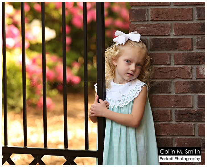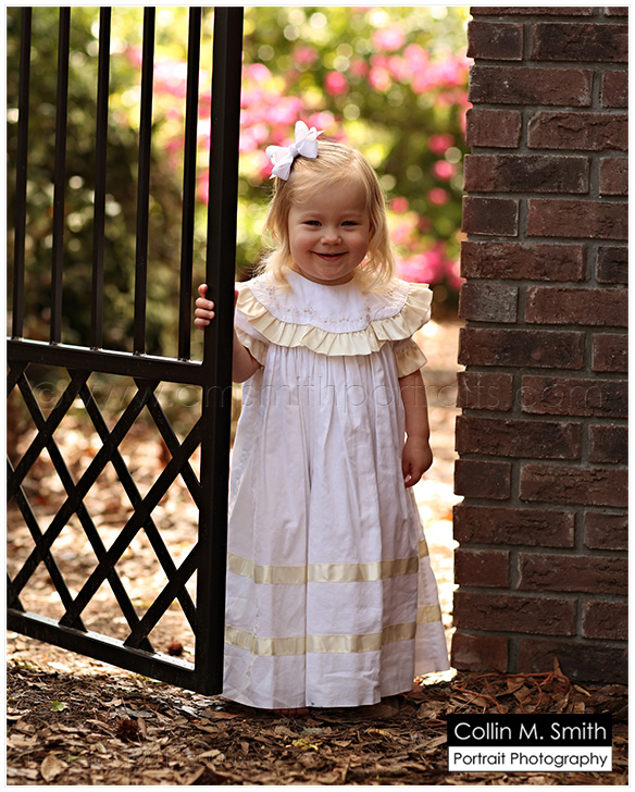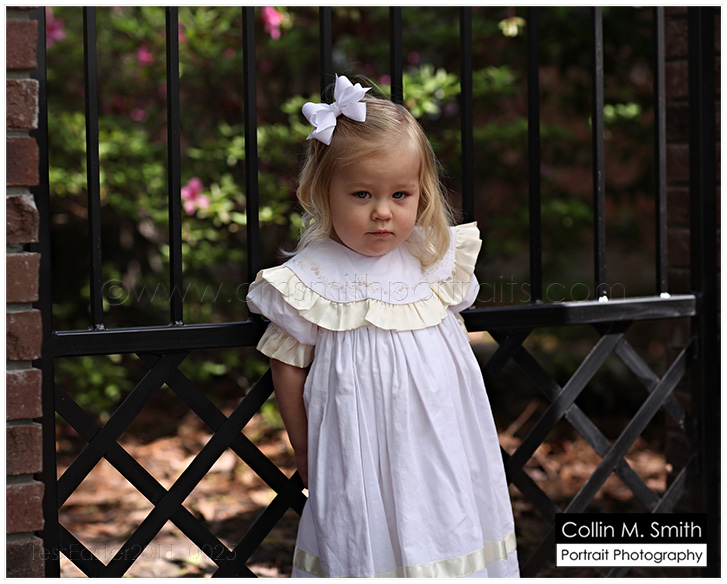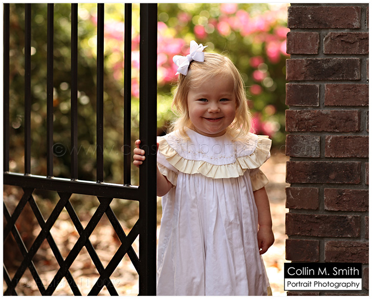 WOW!!! Easter sessions are very near filled and I just realized that I still haven’t put portraits of the gate on the blog! Well, here they are! I can’t tell you how much I am loving these portraits. Collin and I chose to do our heirloom portraits of Makgill and Clara Beth at age 3…ish. I say “ish” because Mak was just shy of three when we photographed him and CB was a little over three (because she didn’t have enough hair to do it before that age). =) Baby Girl was late in getting her curly locks. And we didn’t plan it this way, but Mak and CB’s portraits are both in front of a gate! I guess I just have a thing for iron gates. It feels Southern to me. Anyway, this look is beautiful for so many different ages. Remember, we have the garden swing for little ones and the gate for older children. Can’t wait to start using them!