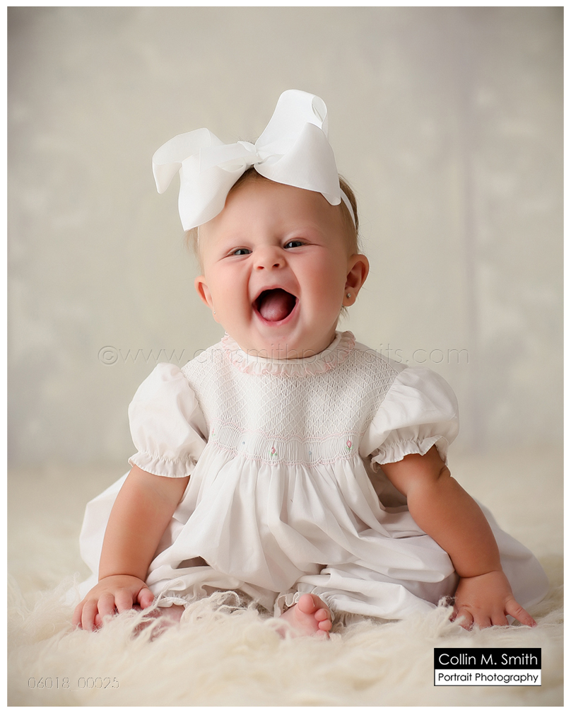 This sweet girl and that giant bow that she’s always sporting…I love it! It’s a pretty permanent accessory and I think it’s the cutest! Harper was a touch unsure about Collin and me for maybe 17 seconds. Then she decided we were kind of okay people, and flashed that giant grin throughout the remainder of the session. So sweet! Baby Girl, we’re having the best time watching you grow up! See you again soon!