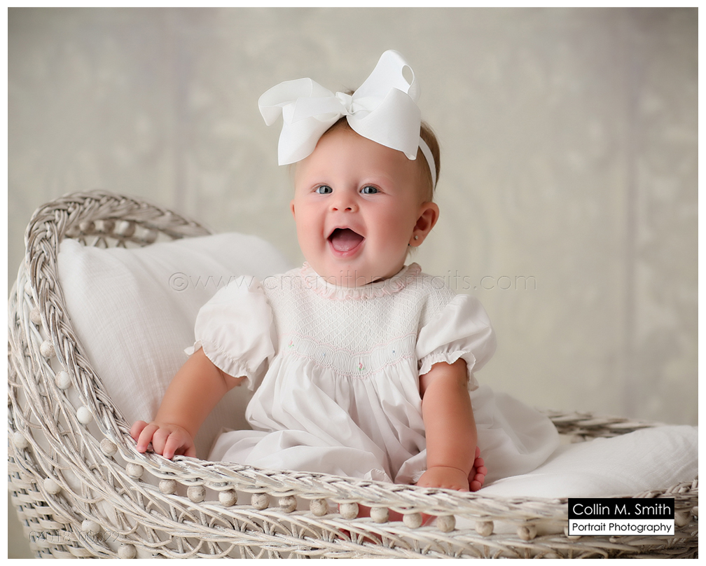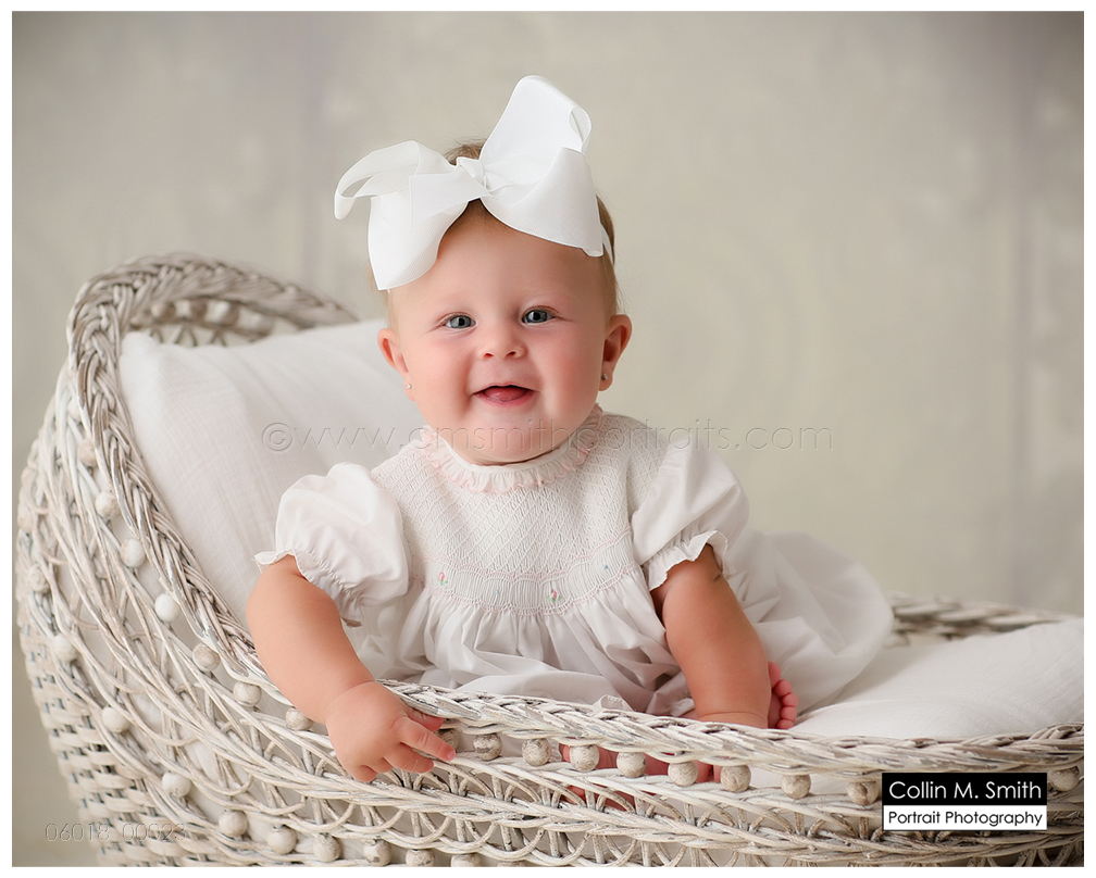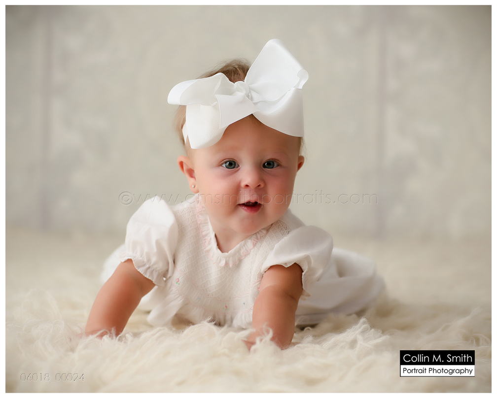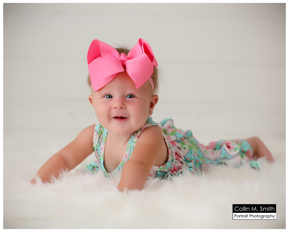 This sweet girl and that giant bow that she’s always sporting…I love it! It’s a pretty permanent accessory and I think it’s the cutest! Harper was a touch unsure about Collin and me for maybe 17 seconds. Then she decided we were kind of okay people, and flashed that giant grin throughout the remainder of the session. So sweet! Baby Girl, we’re having the best time watching you grow up! See you again soon!