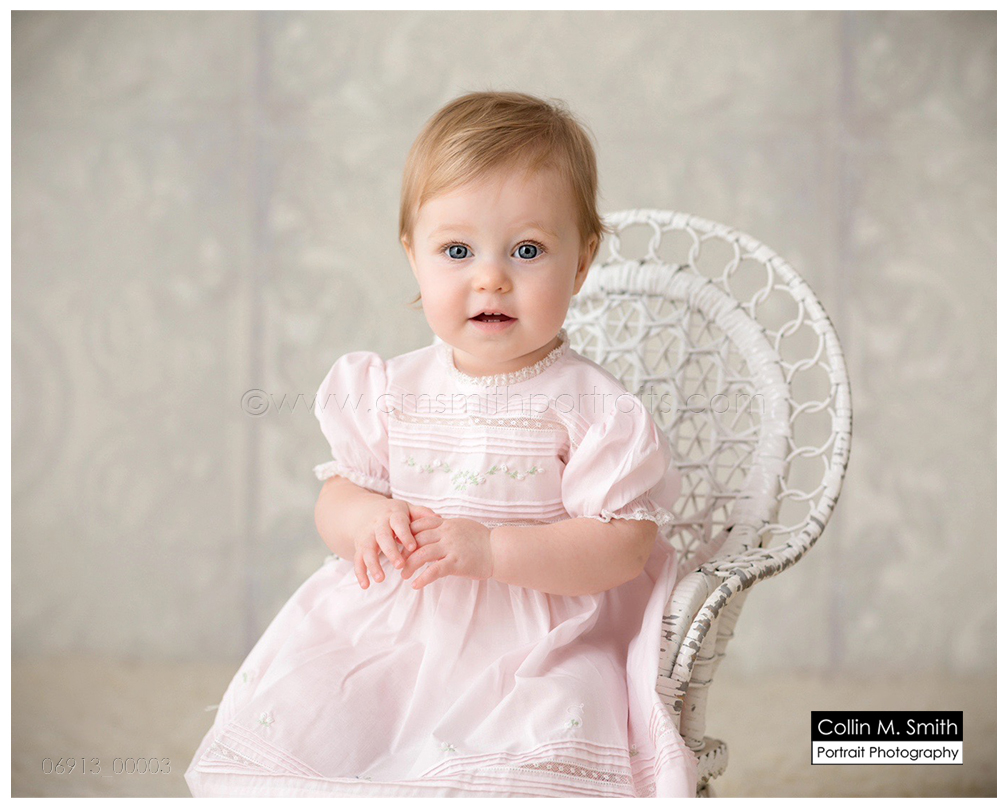 Y’all, this sweet girl is an absolute doll baby! She’s obviously beautiful, but that precious little personality is just adorable! Collin and I had the best time watching Miss McLean scoot all over the studio during her first birthday session. And, y’all, that christening gown?!? Goodness Gracious, babies wearing gowns like that just melt my southern heart into a puddle! Sweet McLean, Happy first birthday! See you again soon! And be sure to head back to the blog in the next few days to see this cutie’s big brother!