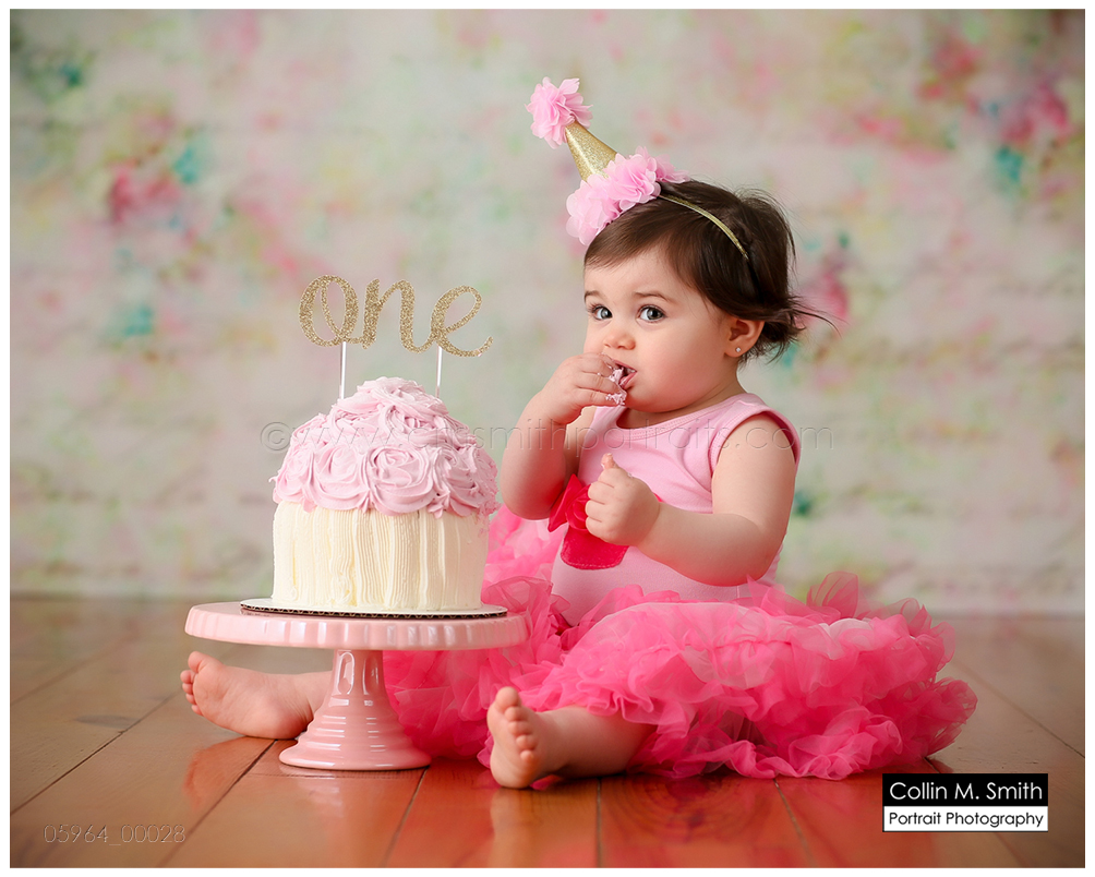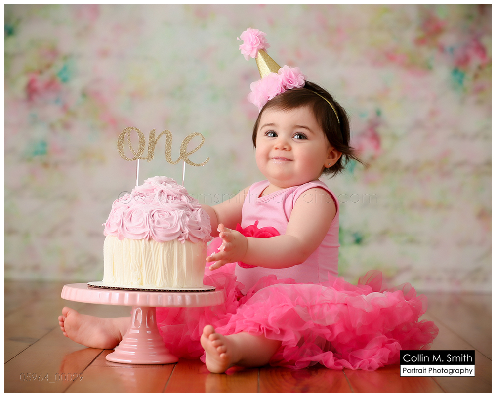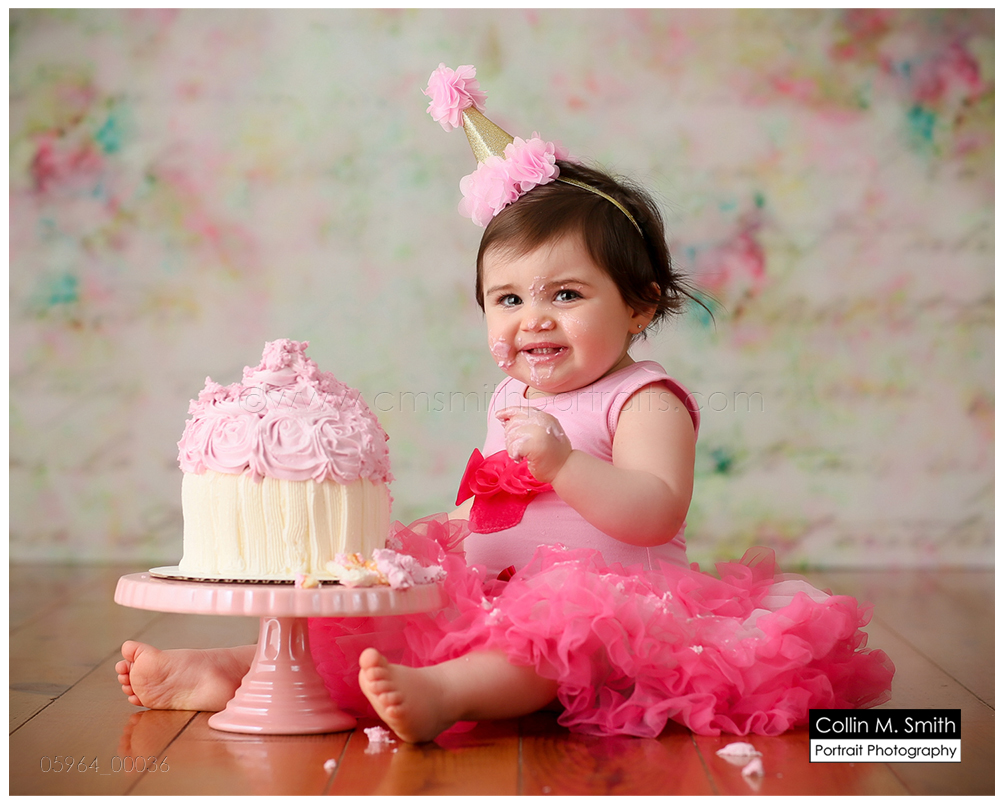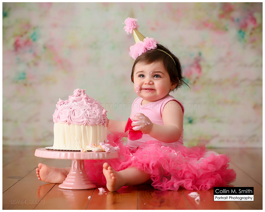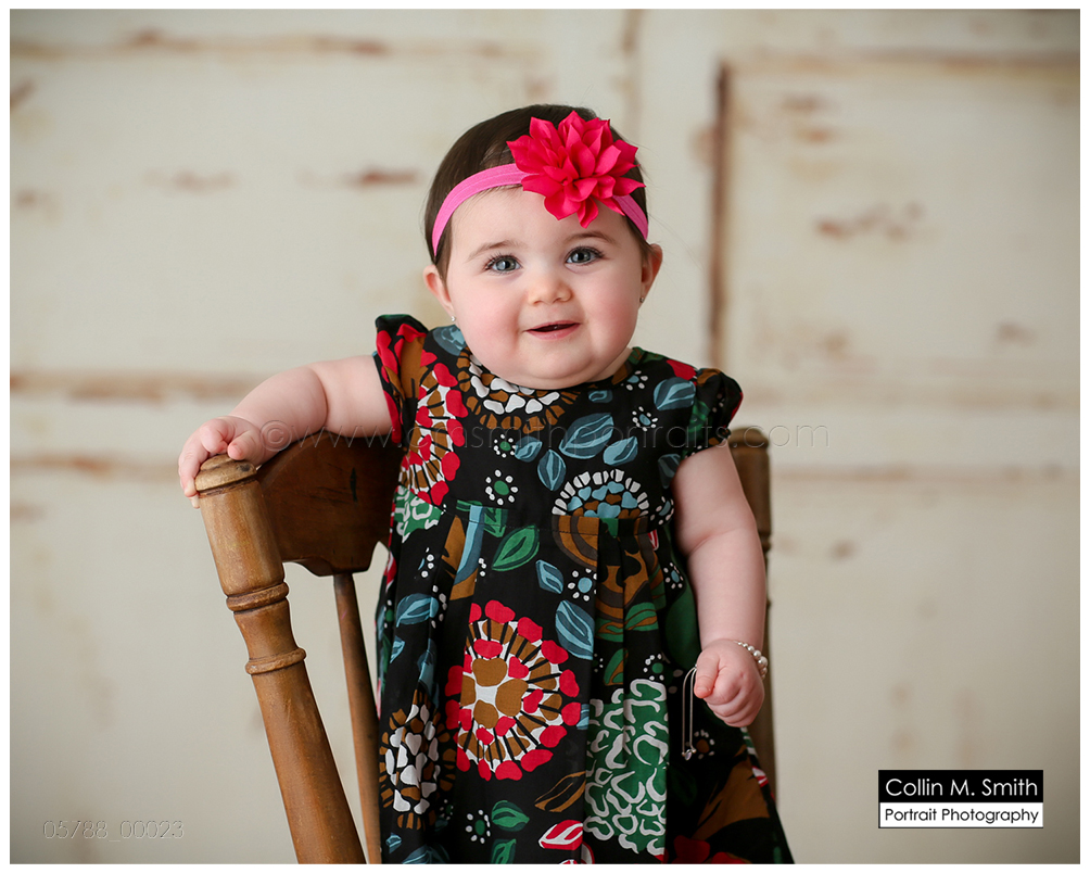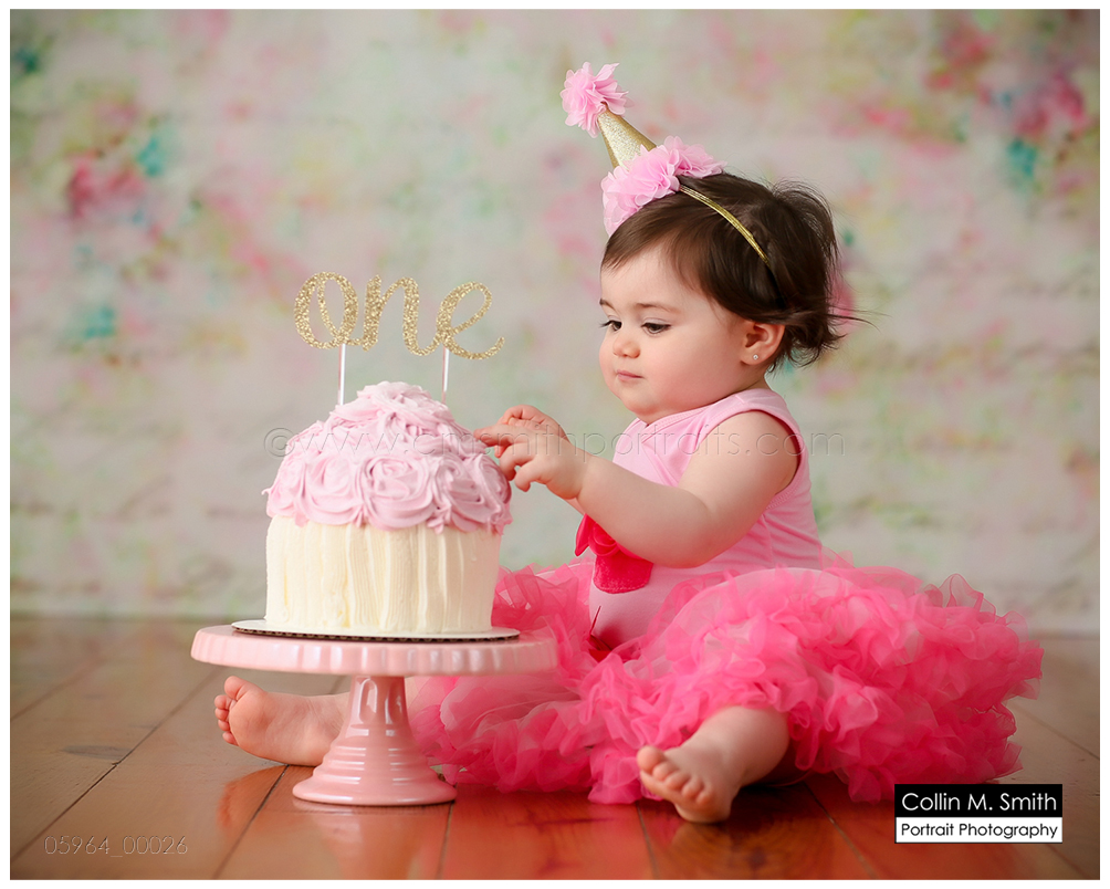 This sweet girl has been such a pleasure to watch grow up! It seems like just yesterday she was that teeny, delicate little babe who would NOT sleep for me at her newborn session! Ha! I will forever be grateful to her wonderful grandmother for lulling her to sleep at that session. Now she is an adorably HAPPY little one year old! Time sure does fly when you’re having fun! Sophie was unsure of her cake at first, but by the end she was a champ and we all loved watching her dig into it. And because it never made it to the blog, I’m also including her nine month session! Happy Birthday, Sweet Girl!