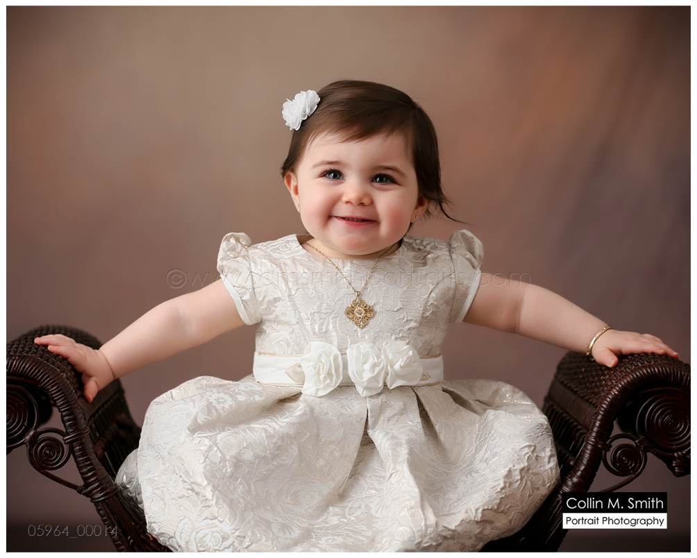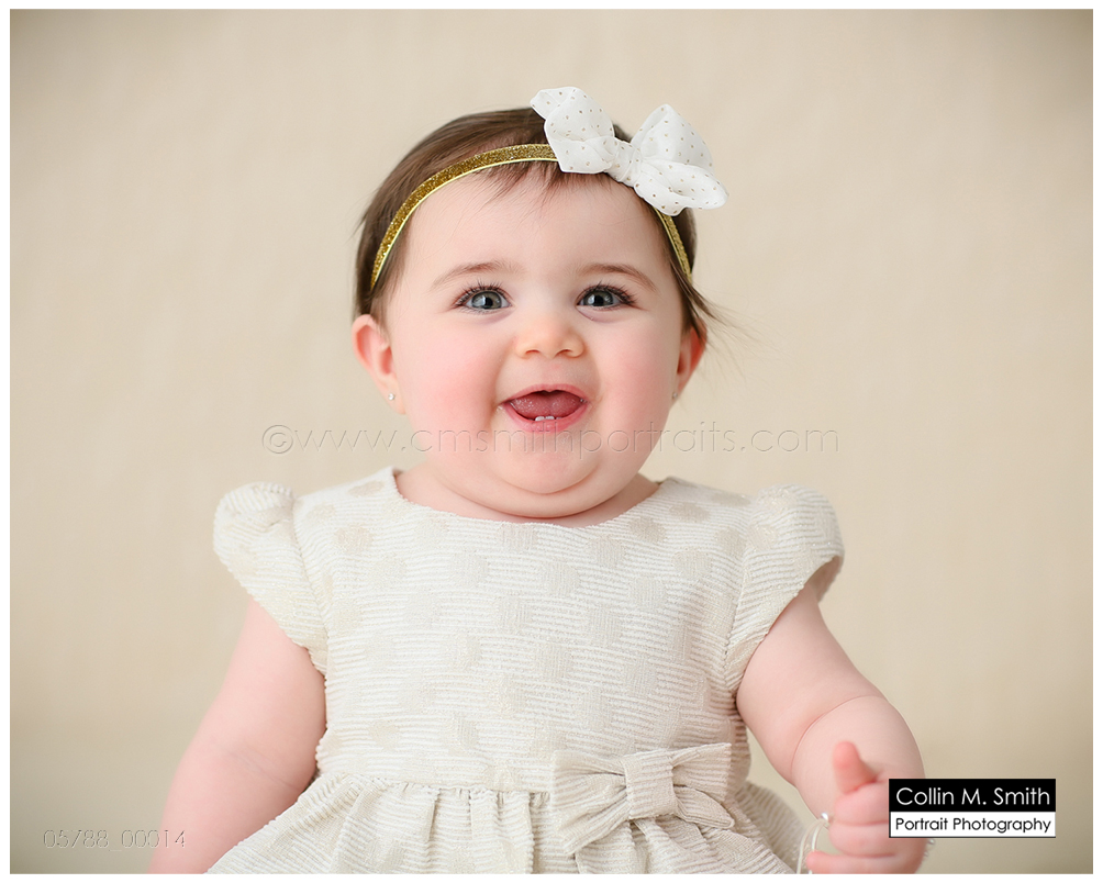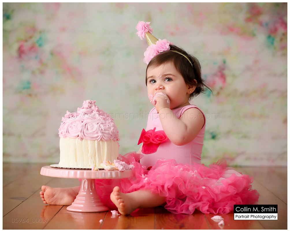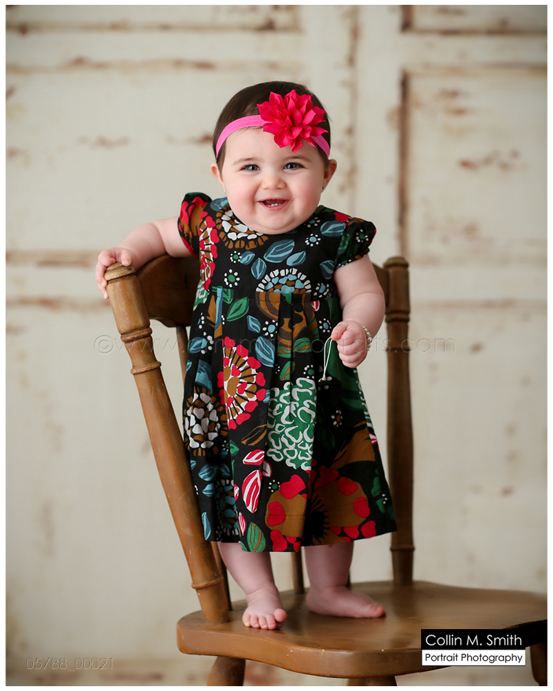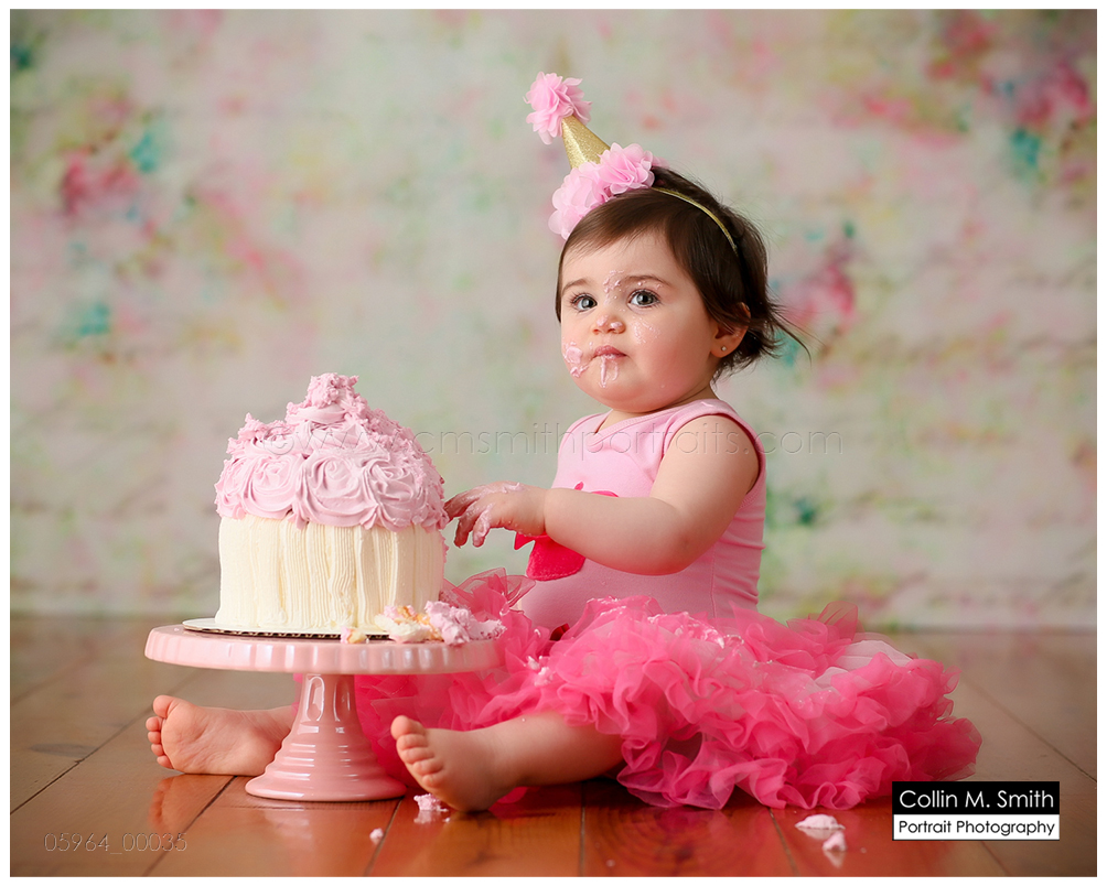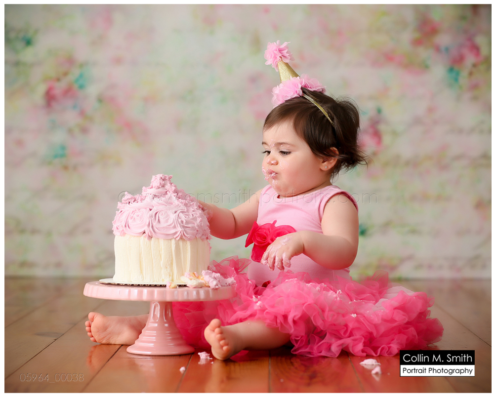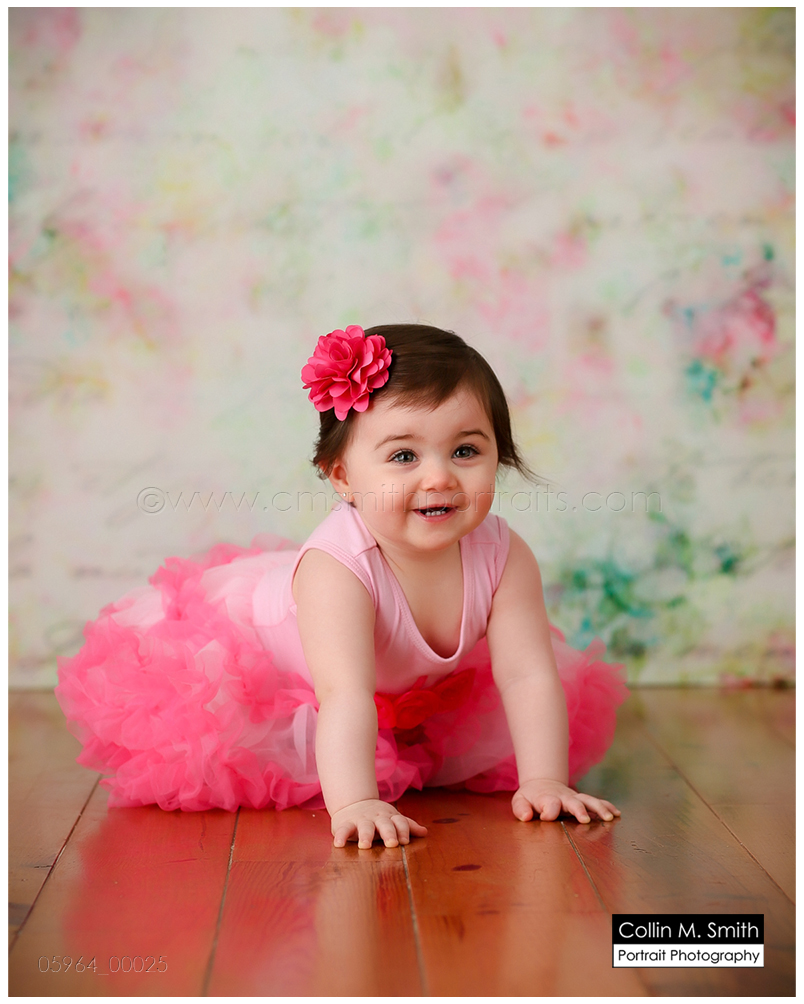 This sweet girl has been such a pleasure to watch grow up! It seems like just yesterday she was that teeny, delicate little babe who would NOT sleep for me at her newborn session! Ha! I will forever be grateful to her wonderful grandmother for lulling her to sleep at that session. Now she is an adorably HAPPY little one year old! Time sure does fly when you’re having fun! Sophie was unsure of her cake at first, but by the end she was a champ and we all loved watching her dig into it. And because it never made it to the blog, I’m also including her nine month session! Happy Birthday, Sweet Girl!