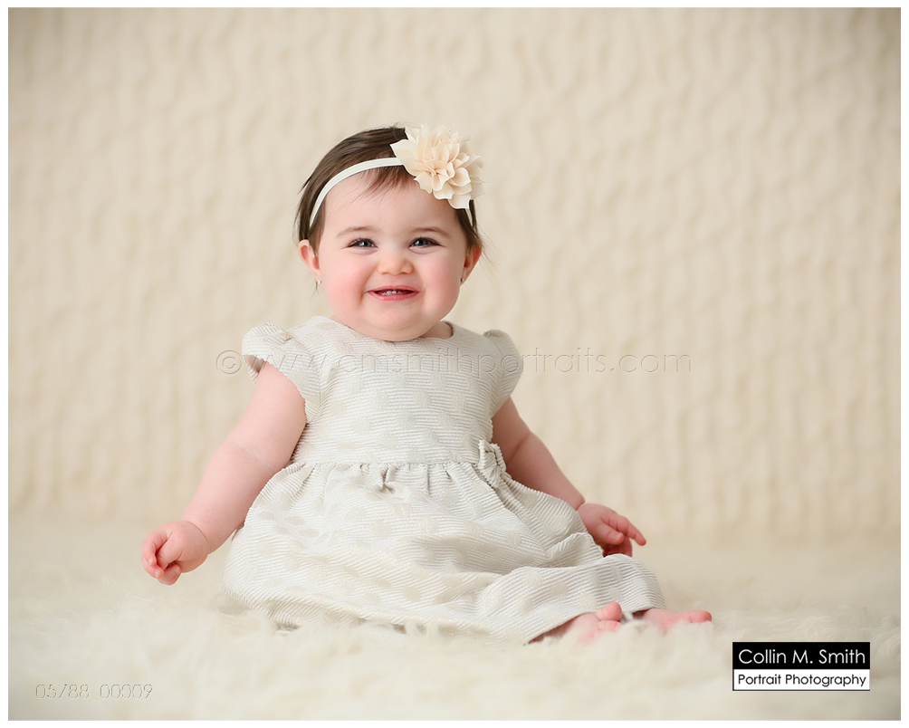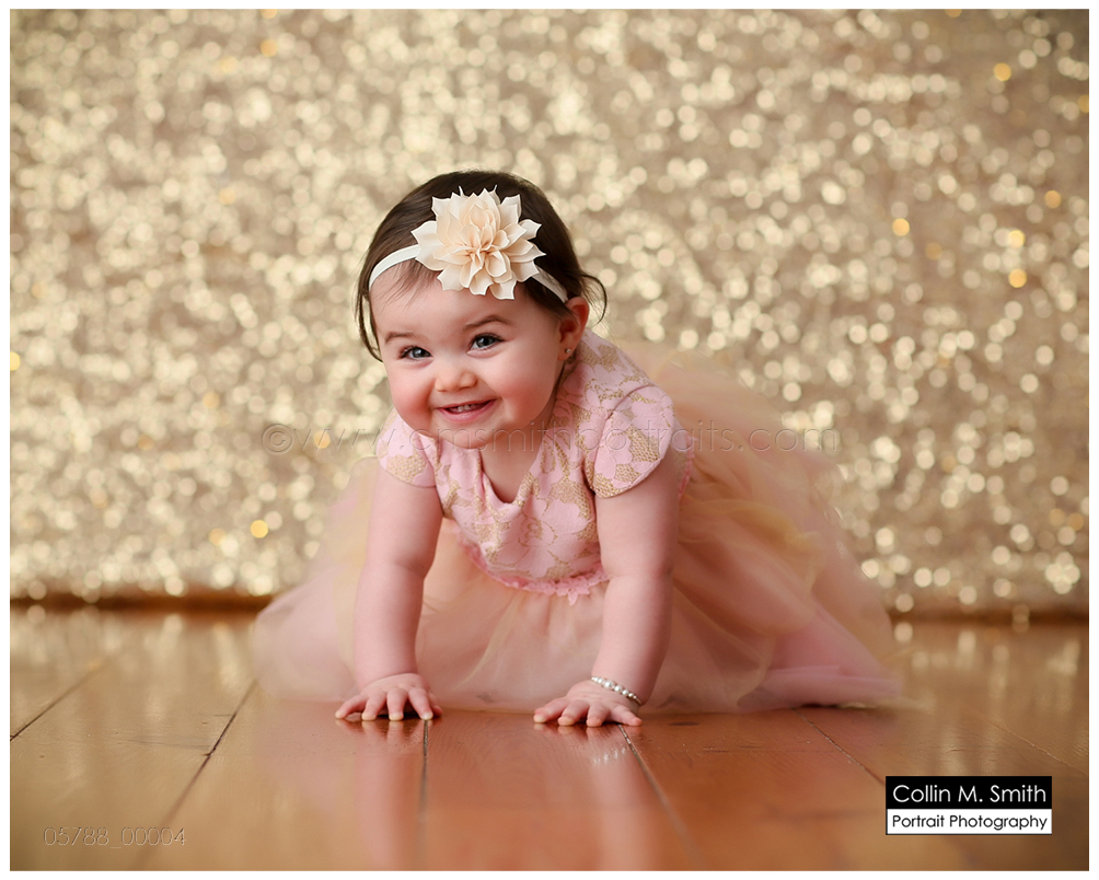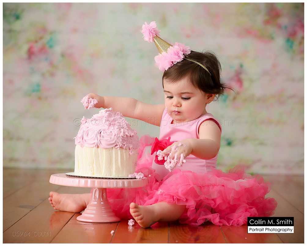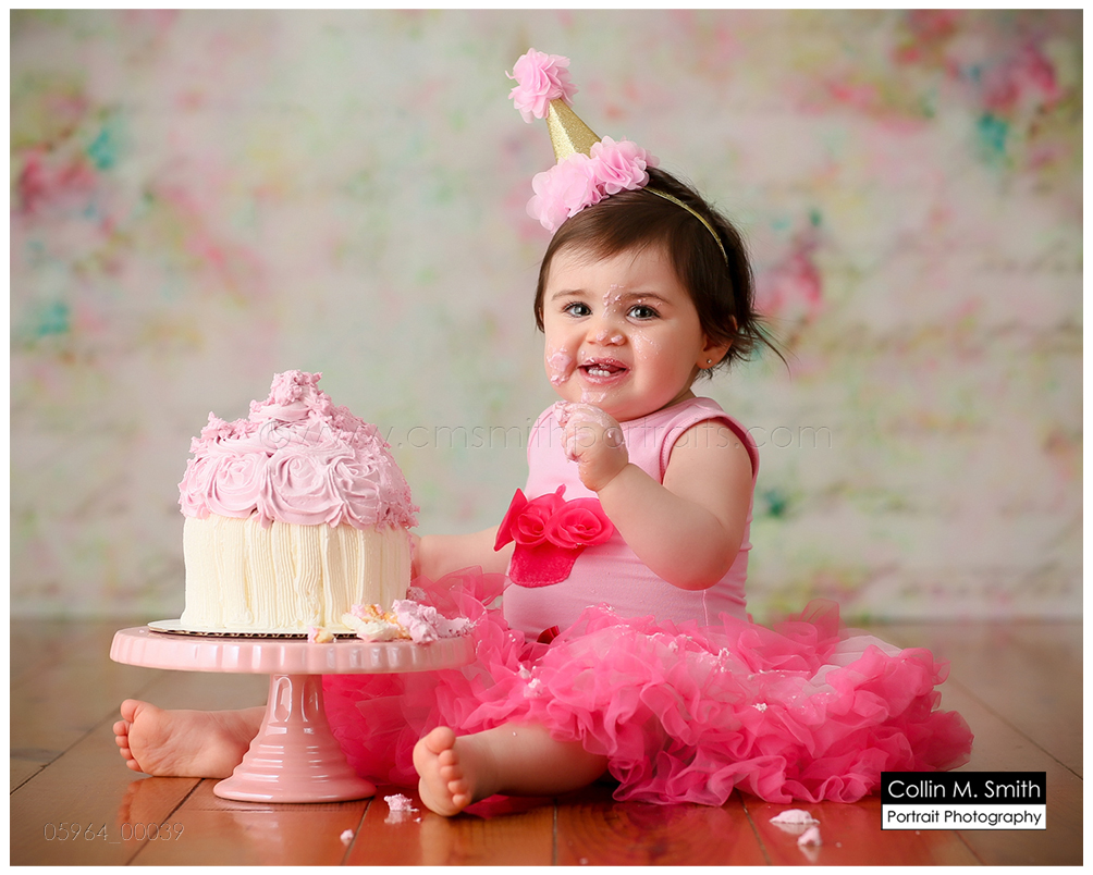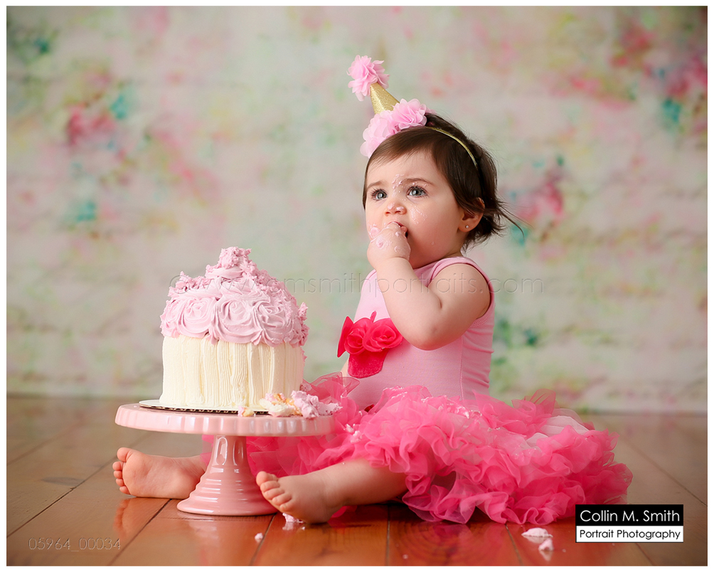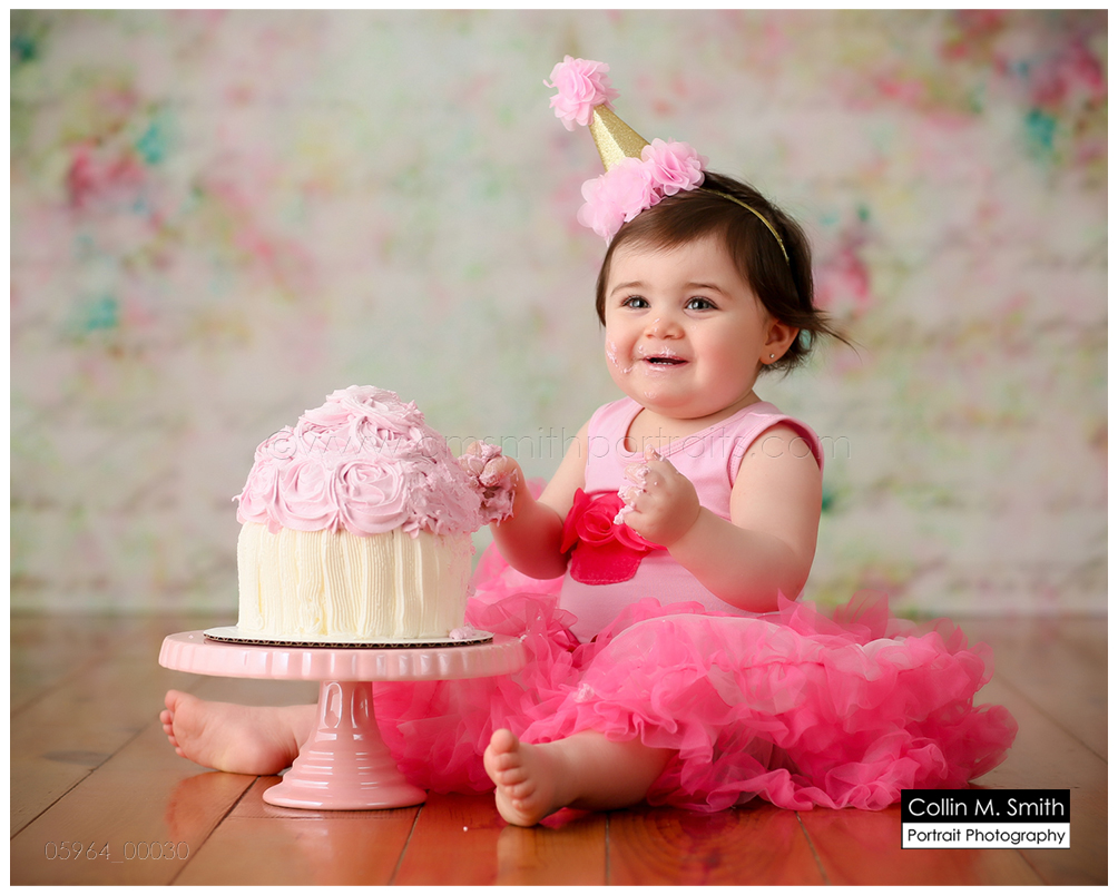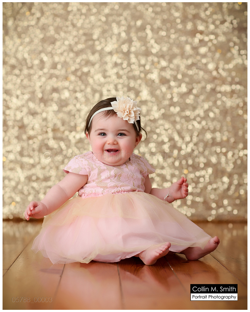 This sweet girl has been such a pleasure to watch grow up! It seems like just yesterday she was that teeny, delicate little babe who would NOT sleep for me at her newborn session! Ha! I will forever be grateful to her wonderful grandmother for lulling her to sleep at that session. Now she is an adorably HAPPY little one year old! Time sure does fly when you’re having fun! Sophie was unsure of her cake at first, but by the end she was a champ and we all loved watching her dig into it. And because it never made it to the blog, I’m also including her nine month session! Happy Birthday, Sweet Girl!