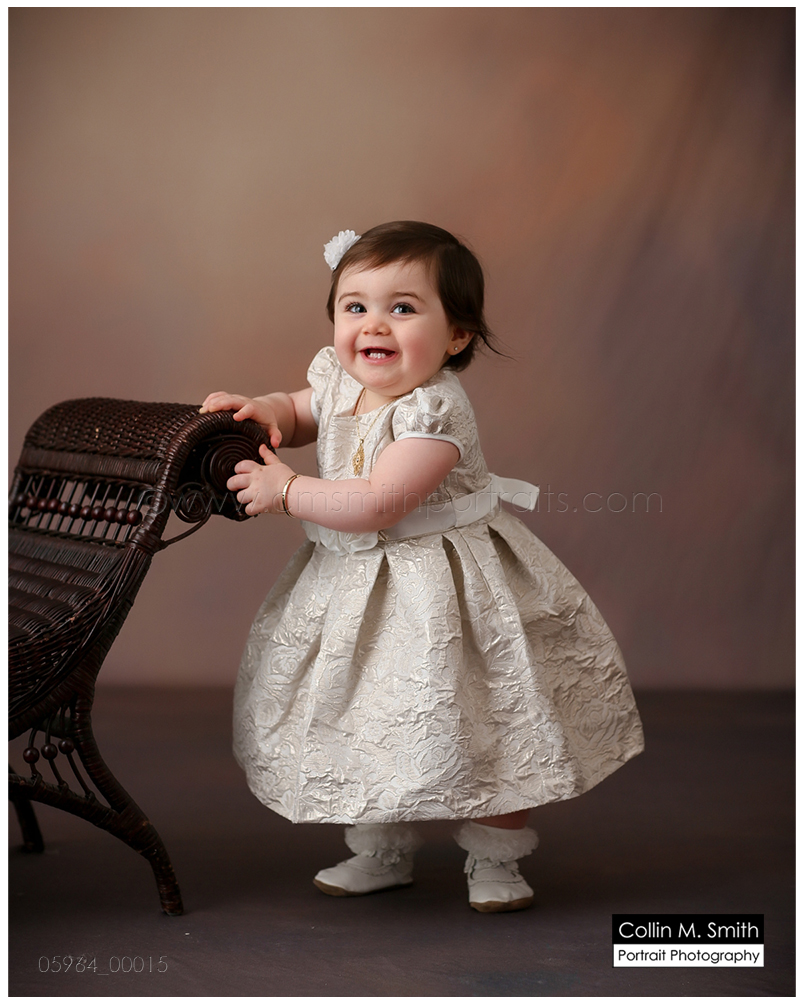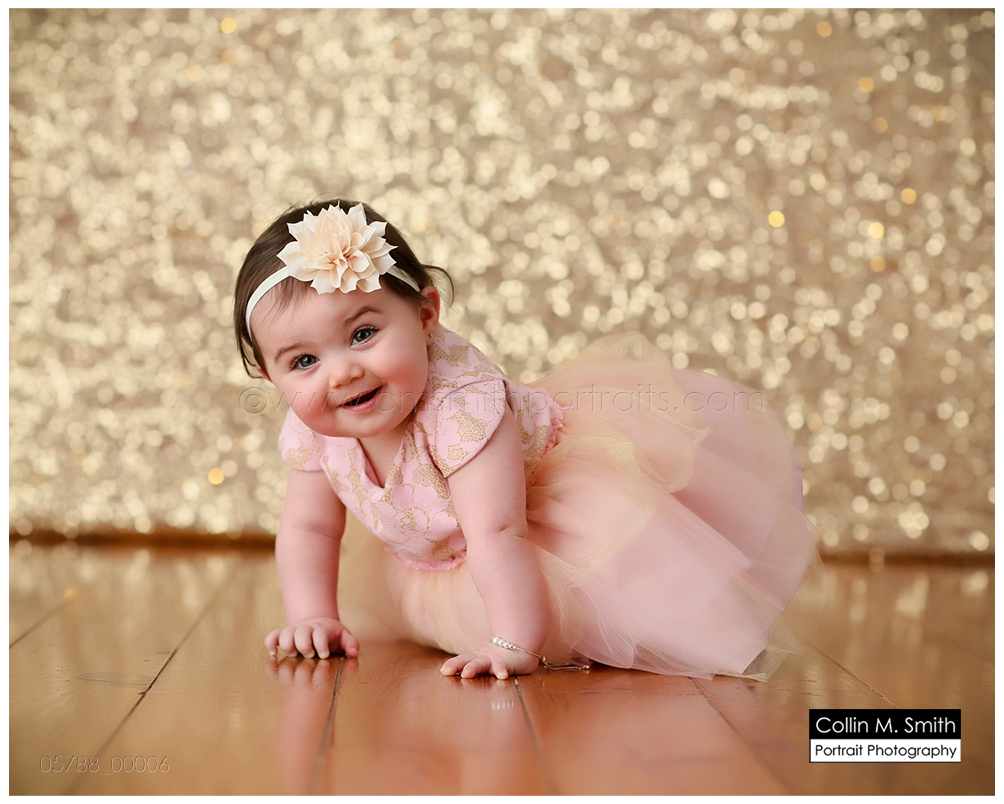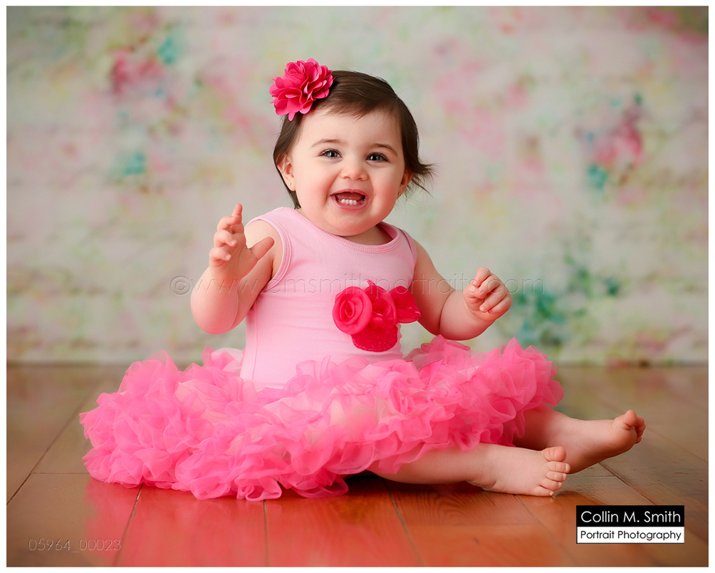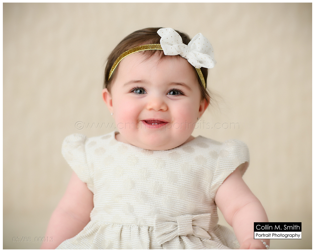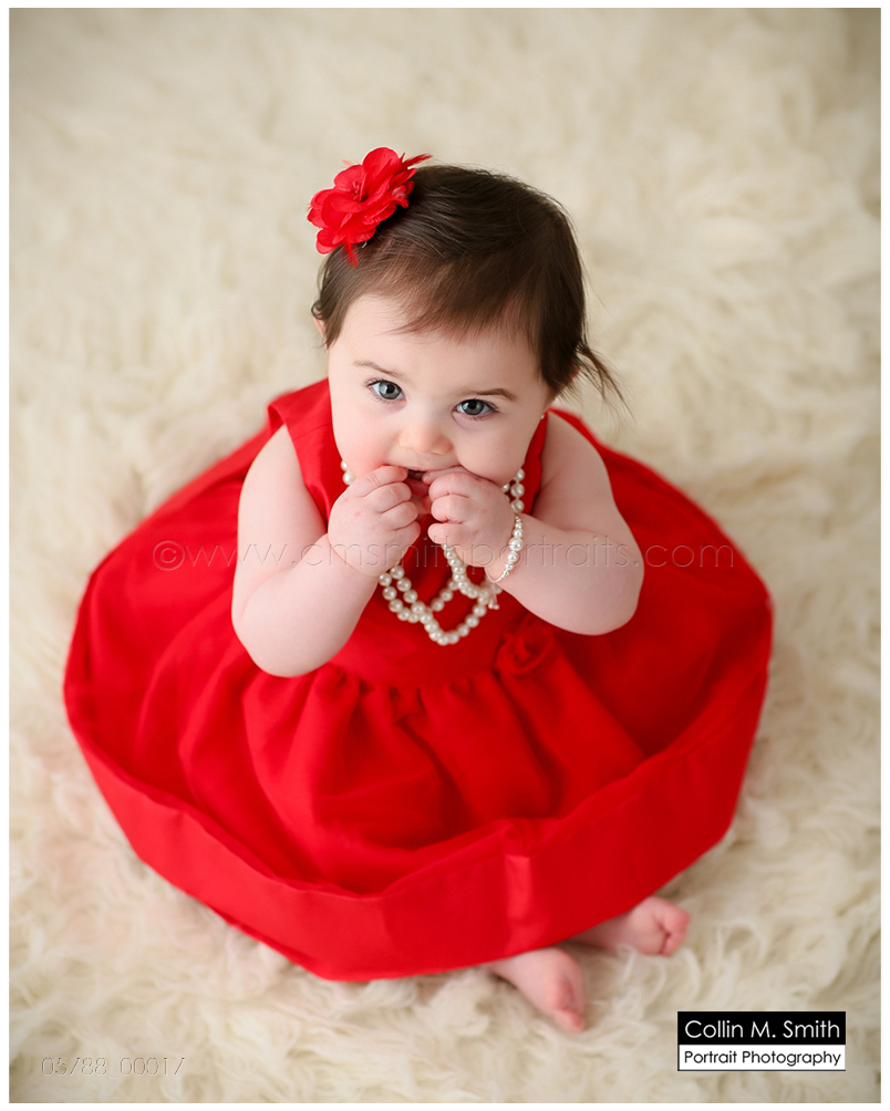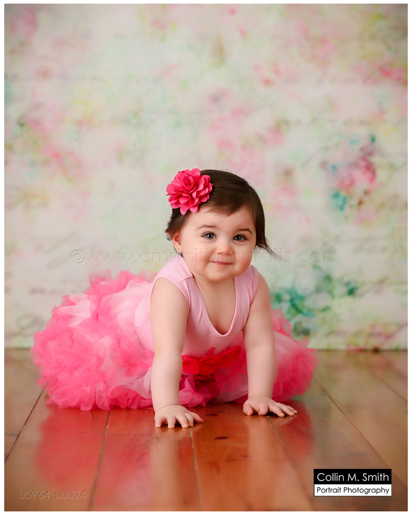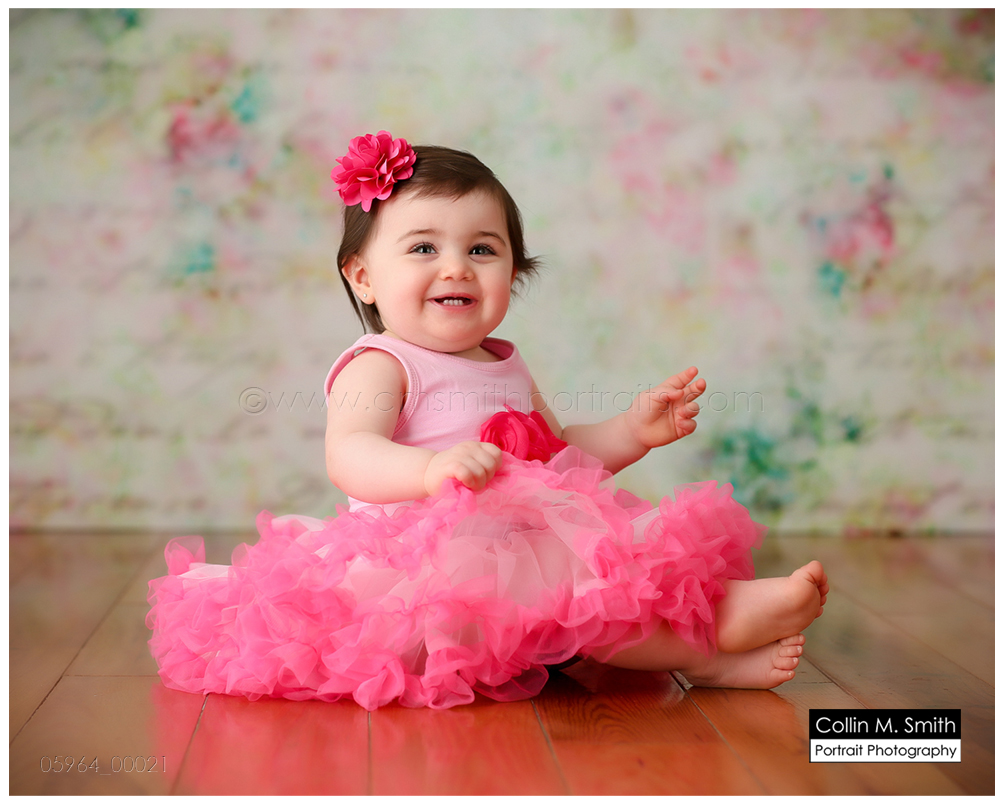 This sweet girl has been such a pleasure to watch grow up! It seems like just yesterday she was that teeny, delicate little babe who would NOT sleep for me at her newborn session! Ha! I will forever be grateful to her wonderful grandmother for lulling her to sleep at that session. Now she is an adorably HAPPY little one year old! Time sure does fly when you’re having fun! Sophie was unsure of her cake at first, but by the end she was a champ and we all loved watching her dig into it. And because it never made it to the blog, I’m also including her nine month session! Happy Birthday, Sweet Girl!