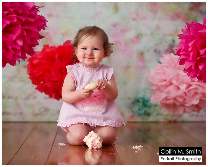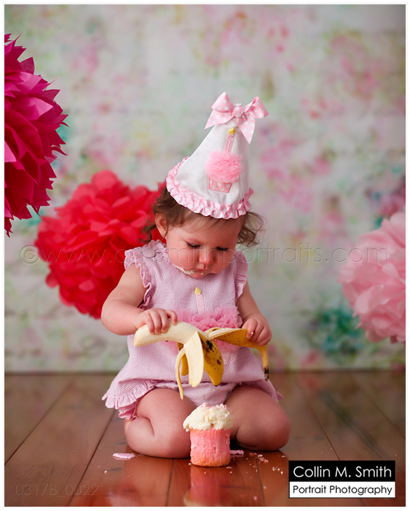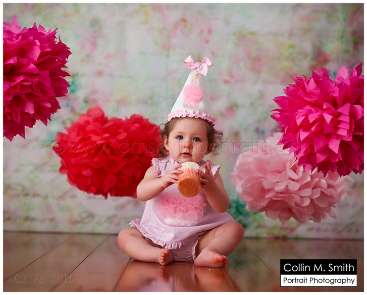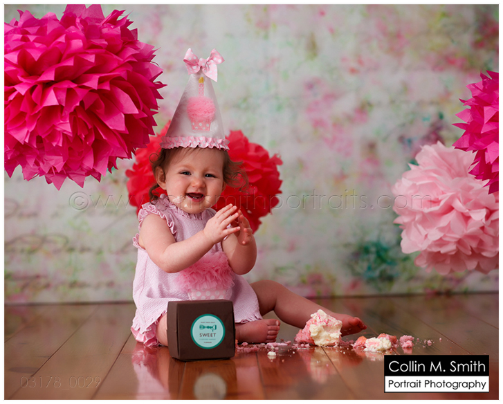 Yep, she is! Sweet Baby is one! And guess what?!? Since it’s now Facebook official I guess I can also share it here…she’s got a baby brother or sister on the way, too! YAY!!! Oh, I LOVE watching our studio families grow! Sydney was hilarious at her session. She had a giant cupcake…from Sweet no less, so we know it was delicious…and yet she kept asking for a banana! HA! I wish I would crave a piece of fruit over cake. Unfortunately for me, the cupcake will win every time. 😉 Happy Birthday, Sweet Sydney! You’re a Beauty!