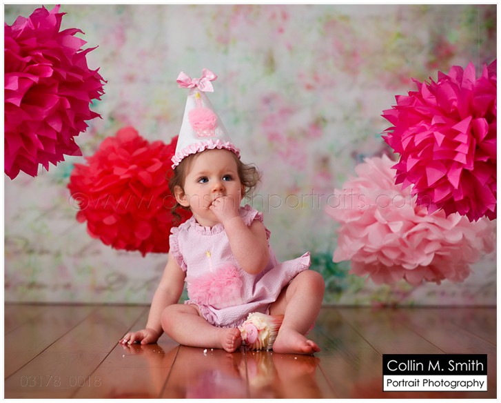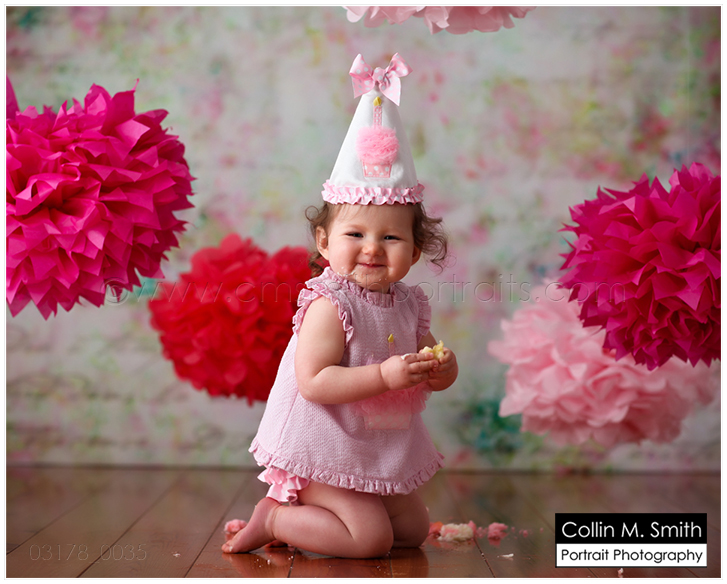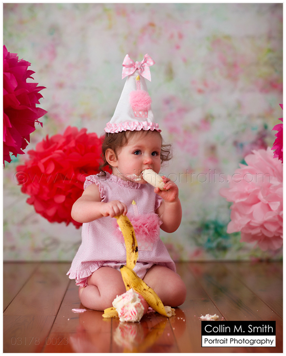 Yep, she is! Sweet Baby is one! And guess what?!? Since it’s now Facebook official I guess I can also share it here…she’s got a baby brother or sister on the way, too! YAY!!! Oh, I LOVE watching our studio families grow! Sydney was hilarious at her session. She had a giant cupcake…from Sweet no less, so we know it was delicious…and yet she kept asking for a banana! HA! I wish I would crave a piece of fruit over cake. Unfortunately for me, the cupcake will win every time. 😉 Happy Birthday, Sweet Sydney! You’re a Beauty!