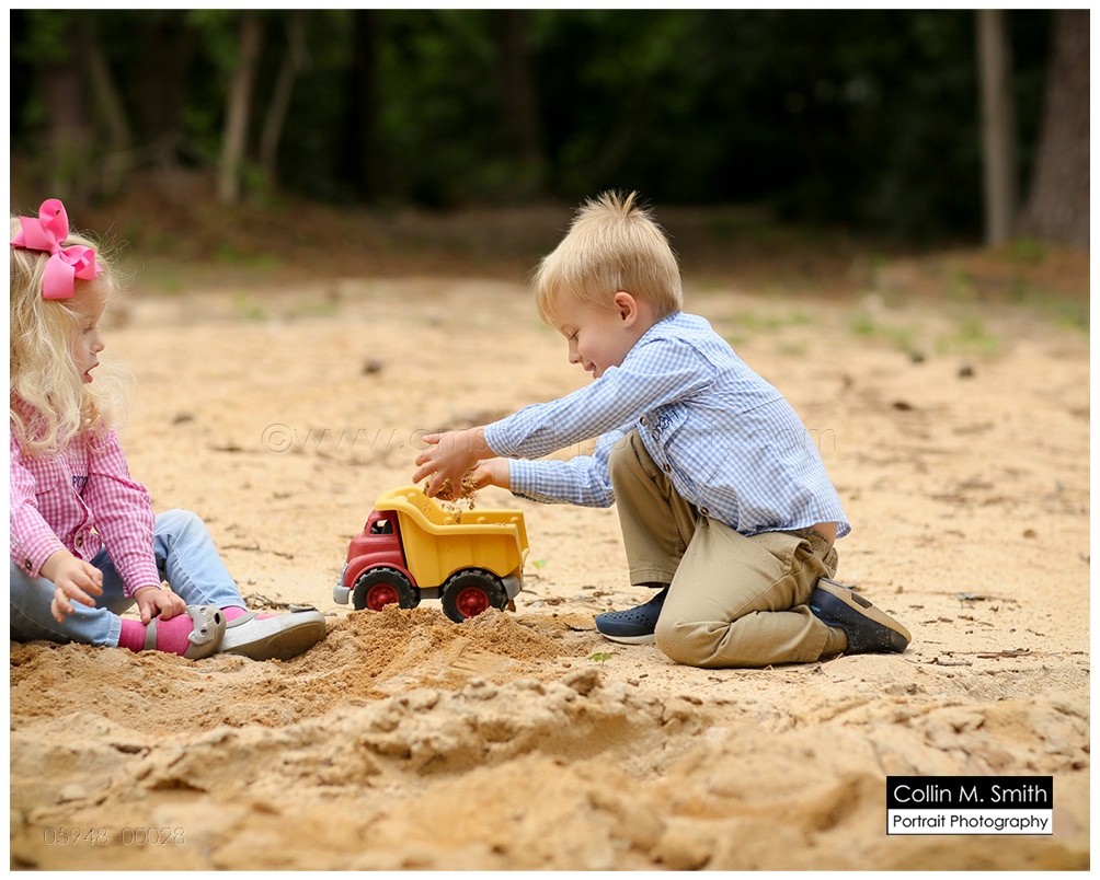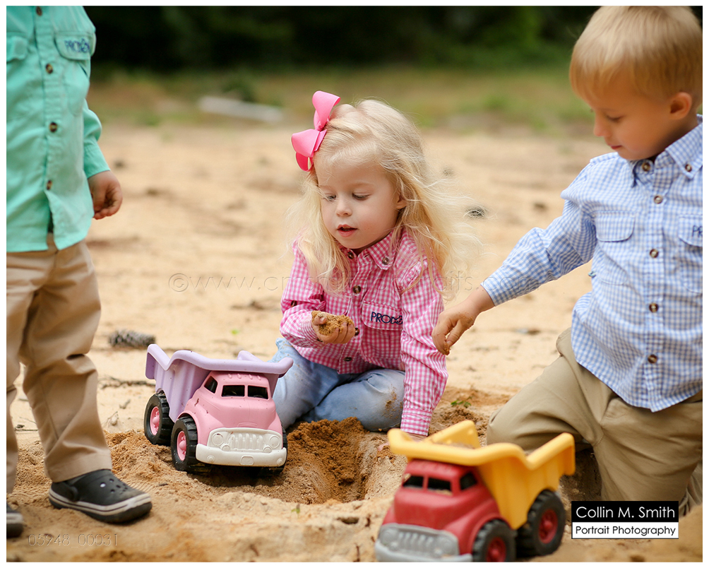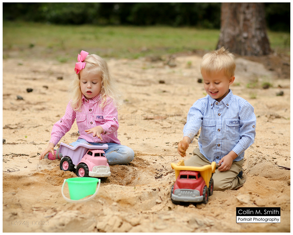 This is one of my favorite sessions that this family does! Their tiny little two year old on their old tree-lined dirt driveway. LOVE. It just doesn’t get a whole lot more southern than that, in my opinion. And I love that this is the driveway that these children will grow up driving their toy trucks on, racing down, and learning to pedal their bikes on. The memories that will be made on this dirt path are priceless, and I know that their momma and daddy will think of that every time they look at these portraits! We photographed Hampton and Katie Brice a couple of years ago, and now it was Bowen’s turn. He’s got the most incredible smile, and I just love how this all turned out. And ending the session with all of the siblings playing in the dirt pile that Hurricane Matthew so generously created for them was fitting. Ending the session in the port-a-potty that the construction crew uses? Well, that was bit odd. But also hilarious and perfectly representative of what their family has gone through since that storm blew in and rocked our area! Guys, as always, it was fun! Can’t wait for next time!