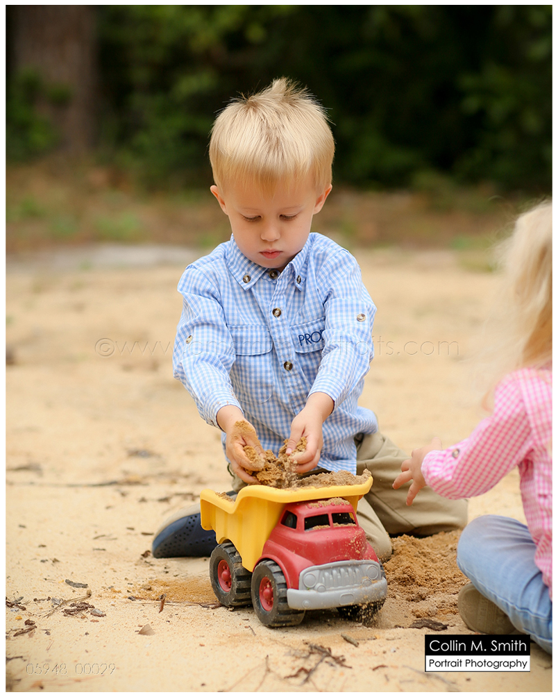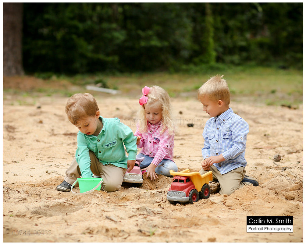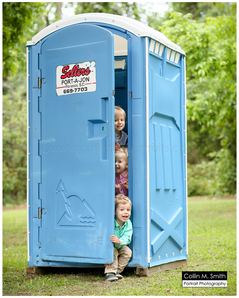 This is one of my favorite sessions that this family does! Their tiny little two year old on their old tree-lined dirt driveway. LOVE. It just doesn’t get a whole lot more southern than that, in my opinion. And I love that this is the driveway that these children will grow up driving their toy trucks on, racing down, and learning to pedal their bikes on. The memories that will be made on this dirt path are priceless, and I know that their momma and daddy will think of that every time they look at these portraits! We photographed Hampton and Katie Brice a couple of years ago, and now it was Bowen’s turn. He’s got the most incredible smile, and I just love how this all turned out. And ending the session with all of the siblings playing in the dirt pile that Hurricane Matthew so generously created for them was fitting. Ending the session in the port-a-potty that the construction crew uses? Well, that was bit odd. But also hilarious and perfectly representative of what their family has gone through since that storm blew in and rocked our area! Guys, as always, it was fun! Can’t wait for next time!