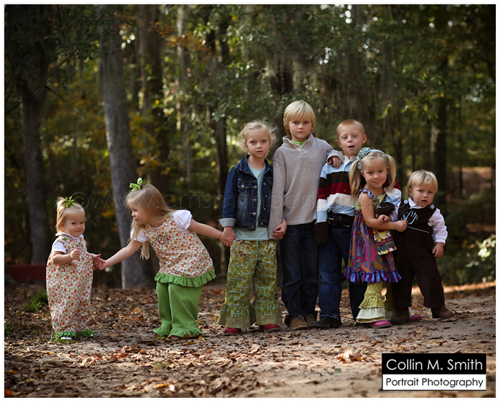 I have to apologize to the people in this post…sometimes they get the shaft big time when it comes to their portraits. For instance, in this case. This session was done quite a while back, and they haven’t even seen the photos from it yet. Oops. Sorry, guys. The truth is, these are the people that we should bend over backwards the most for. They are ALWAYS there to love on our kids or help out when things are getting a little stressful here at the studio. And they never complain about it. They think nothing of bringing Mak and CB to their home for the whole day or even overnight if we need it. Can I get an Amen for good family? For real, sometimes I don’t know how we’d get by without them. I definitely don’t take it for granted that we have so many hands right here in town to help out. I definitely do believe that it takes a village to raise a kid…and I know I’ve said it before, but I LOVE my village! The other really great part about having them all here is that I get to love on their kids, too. And Oh My Goodness, these are some of the greatest kids on the planet! Nothing makes my heart happier than watching all seven of the cousins play and fight together. I LOVE them!!