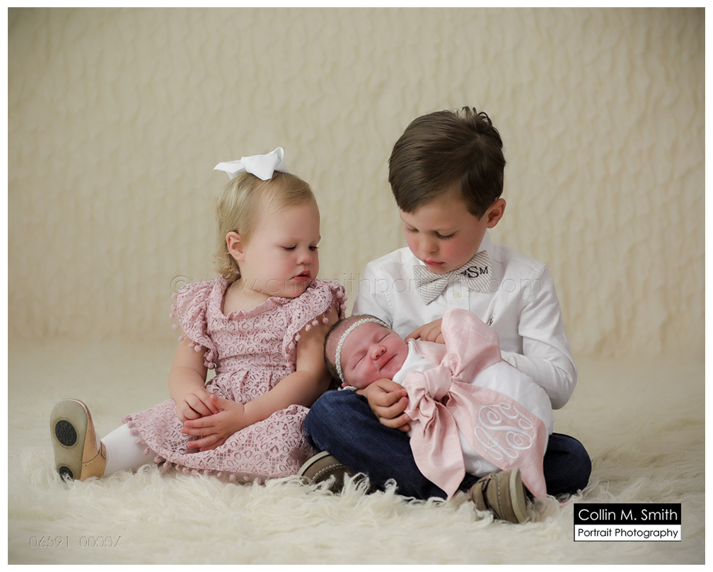 I teared up when this sweet girl’s momma surprised us with the Big Brother and Big Sister shirts she had for Miller and Leighton to wear to announce that a new little baby was on the way. That seems like just a few weeks ago, and now she’s here! And what a cutie she is! Ava Gray melted my heart immediately when she came to the studio for the first time, and she was just perfect for her first session. She fussed just enough that I got to get some extra cuddle time in! 😉 Miller is in love with another baby sister, and I predict that Ava Gray and Miss Leighton will be best friends in no time. We just love this family and are so happy that there’s another one to love on! Guys, Congratulations! Welcome to the world, precious girl!