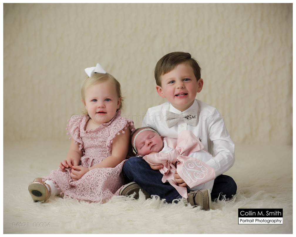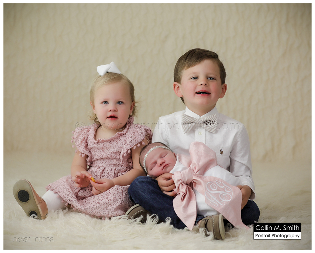 I teared up when this sweet girl’s momma surprised us with the Big Brother and Big Sister shirts she had for Miller and Leighton to wear to announce that a new little baby was on the way. That seems like just a few weeks ago, and now she’s here! And what a cutie she is! Ava Gray melted my heart immediately when she came to the studio for the first time, and she was just perfect for her first session. She fussed just enough that I got to get some extra cuddle time in! 😉 Miller is in love with another baby sister, and I predict that Ava Gray and Miss Leighton will be best friends in no time. We just love this family and are so happy that there’s another one to love on! Guys, Congratulations! Welcome to the world, precious girl!