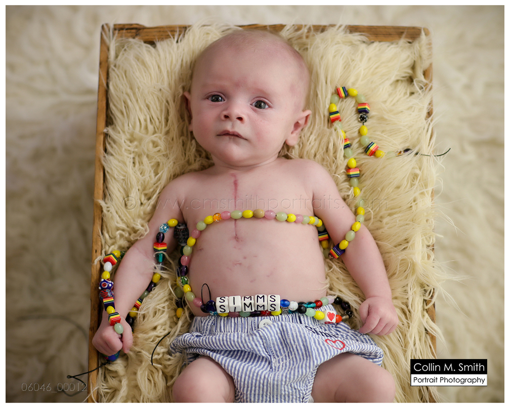 What a sweet little boy with a mighty BIG story! Already in his short little life he has overcome some major obstacles. He was born with a heart defect and has undergone more surgeries, hospital stays, pokes, prods, and general ICK than most of the rest of us will ever see in our entire lifetime. And he has been the happiest little sugar baby every time I’ve been around him. It’s unbelievable, and I know for a fact that God most definitely did make that heart extra special! Simms, you are my hero, little buddy! Collin and I are thrilled beyond words to watch you grow up!