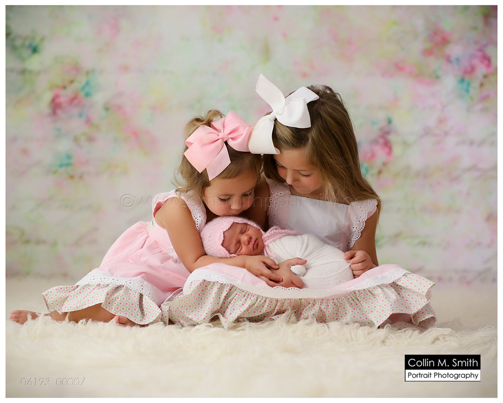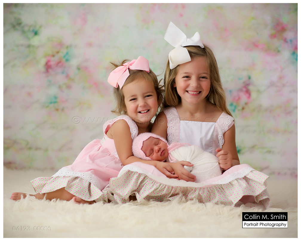 THREE beautiful baby girls!!! Oh My Goodness, they’re all so adorable! These sweet girls are near and dear to our hearts, because they are the daughters of some of our fellow life group members at church. Miss Gracyn is the newest life group member, and we all have big plans to spoil her rotten! Hannah Kate and Emma were perfect big sisters for their session, and held their new baby like champs. And Miss Gracyn?! Oh My Stars, she’s breathtaking! Such a gorgeous girl! Welcome to the world, sweet Gracyn. We’re so glad you’re here!