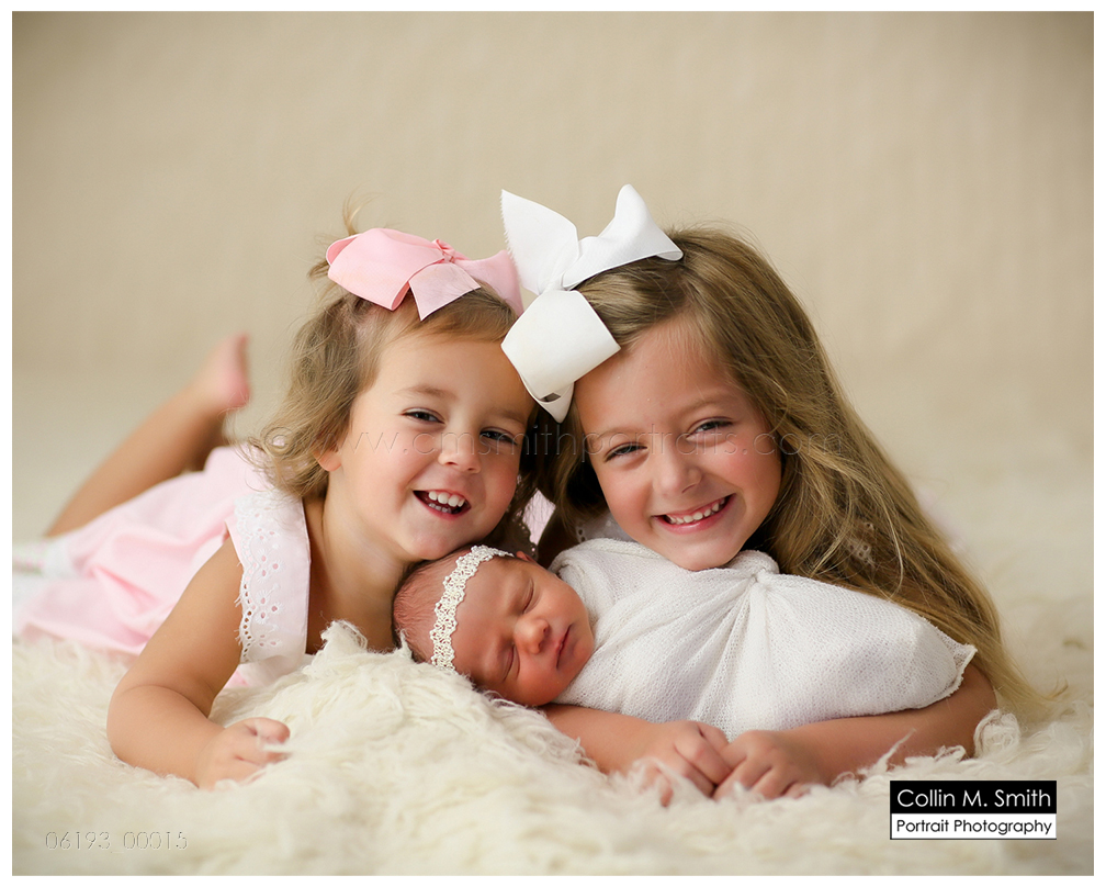 THREE beautiful baby girls!!! Oh My Goodness, they’re all so adorable! These sweet girls are near and dear to our hearts, because they are the daughters of some of our fellow life group members at church. Miss Gracyn is the newest life group member, and we all have big plans to spoil her rotten! Hannah Kate and Emma were perfect big sisters for their session, and held their new baby like champs. And Miss Gracyn?! Oh My Stars, she’s breathtaking! Such a gorgeous girl! Welcome to the world, sweet Gracyn. We’re so glad you’re here!