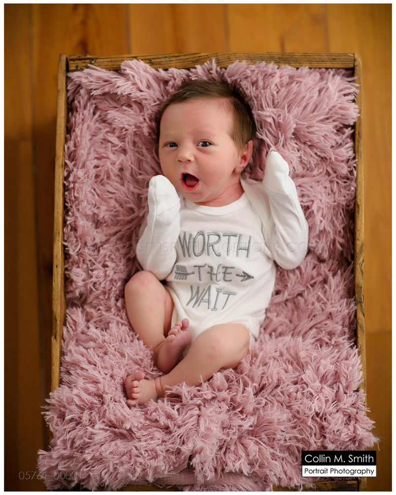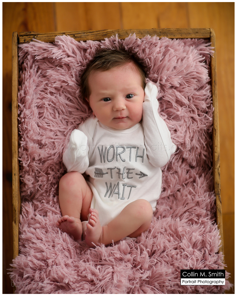 What a cutie Miss Lillian is! She came into this world with a head full of incredible hair. I just love that! Perfect for headbands and bows. =) For being such a tiny little thing she sure did give us some incredible eye contact! Her parents did a great job of incorporating personal props into her session. The “Worth the Wait” onesie is my favorite ever, and I always love incorporating photos of those she was named for into a session! Sweet girl, you were perfect for your session! Can’t wait to see you again soon!