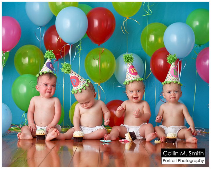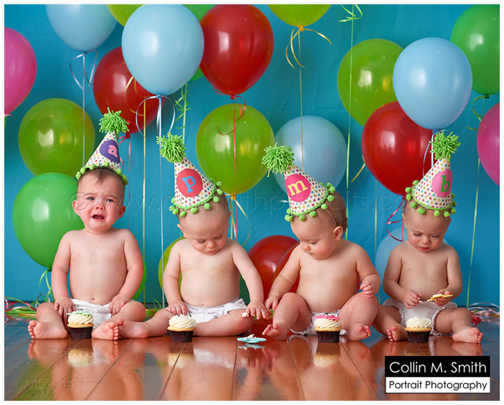Can you even believe it?!?! These four precious little miracles are turning ONE this Saturday! What an incredible blessing they are! We have had so much fun watching them grow up this year, and every time I see them I am amazed at how healthy they are. Our God is an Awesome God to protect their precious lives the way he has from the very beginning! We have only done the “cake smash” portion of their session up to this point…the full on session is coming up soon so stay tuned! Also, a HUGE thank you to Sweet for providing the super cute monkey cupcakes for these cute little monkeys! I think they were a little overwhelmed by the whole thing…especially poor Addison! Sweet Baby Girl! Happy Happy Birthday to Addison, Parker, Maylee, and Brayden. We love you, Sweet Things!!!