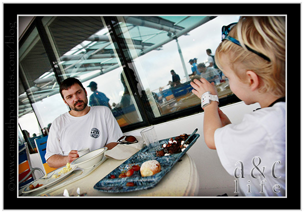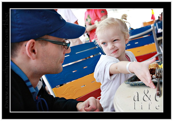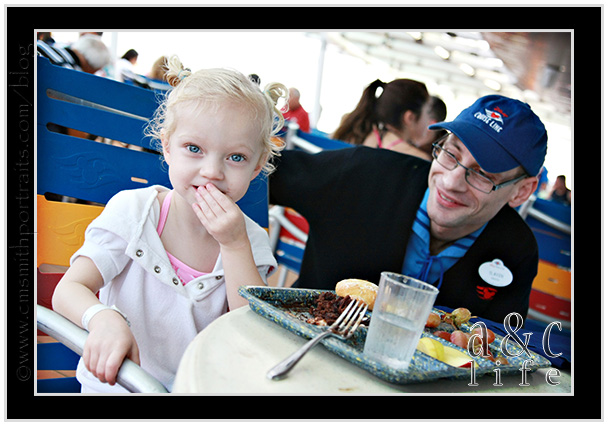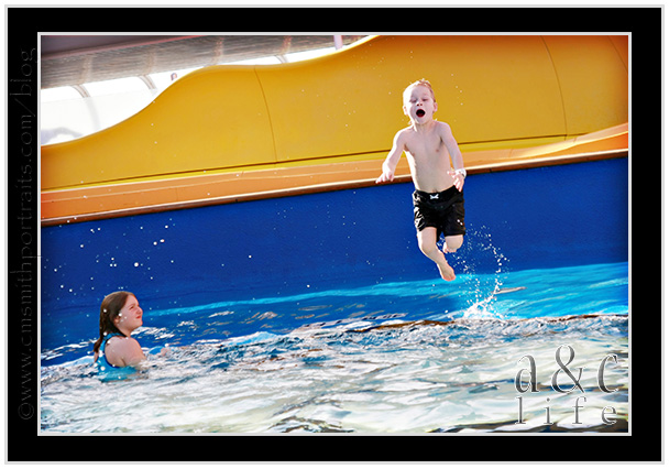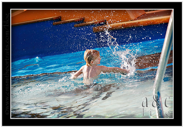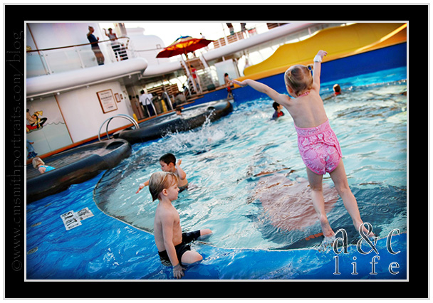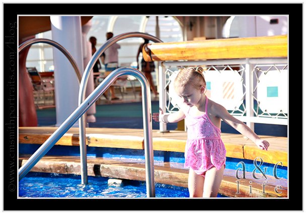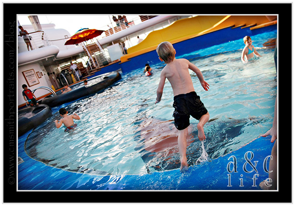 We headed to the pool just as we were pulling into port at Nassau. Collin and I sat by the pool sipping coffee while our little fish splashed, jumped and swam.