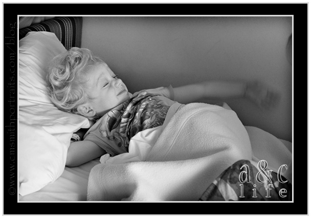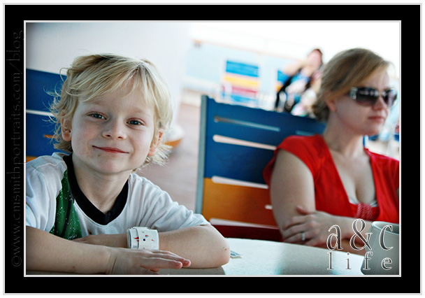 And here’s the last picture of the day. We went to the dining room for lunch and Mak didn’t want anything. I thought he was tired. I was WRONG. Let’s just say lunch did NOT have a pretty ending and we spent the rest of the big birthday in the room. 🙁 They gave him a Miller Lite beer bucket to throw up in. Thankfully we didn’t need it, but I hate that we didn’t get a picture of that! It looked like he was hungover. Poor kid. We missed all of the big festivities that night and got a TON of rest. And thankfully, the next day he was ready to play again! I hate that it happened but it could have been much worse!