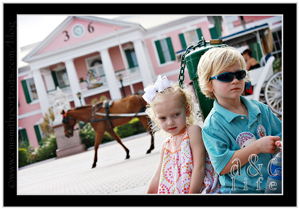 After a little over an hour of swimming we dragged them back to the room to get them ready to explore Nassau. We should’ve just stayed at the pool. We are NOT fans of Nassau. Never have been. But we wanted the kids to see it. You can tell from this pic how much they loved it. Mak’s starting to feel bad here, we just didn’t know it yet. 🙁