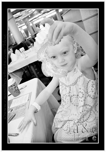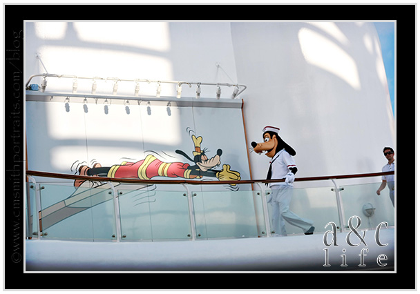 This was it!! The day that my boy turned 6…at Sea! I had high hopes for today. We would swim, hang out for a little bit in Nassau, possibly talk the kids into a nap…but what I was really looking forward to was the Pirate Party that night! I was so excited that this party was falling on his actual birthday. We had his Jack Sparrow costume packed, had told him all about Pirate Mickey and they were shooting FIREWORKS off the boat that night!!! How FUN is that?!? AND, we were scheduled to eat supper in what everyone says is the best restaurant on the boat that night, Animator’s Palate. It’s the one that changes color throughout the meal. It didn’t really end up that way…