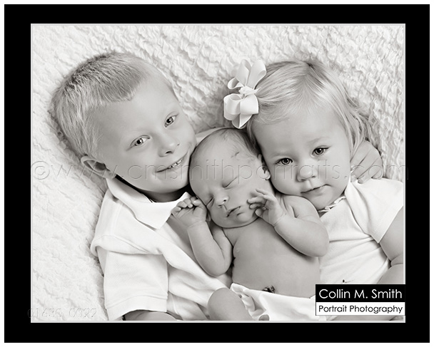 So I’d say it’s about time for another Baby Tate post, don’t you think? Goodness Gracious I love this kid!! He is SOOOO sweet and snuggly…and his digestive system is working quite nicely as you will see. 😉 Rebecca REALLY wanted a portrait of her three babies. Collin and I thought that was a great idea and all, but if you knew how Miss Tess feels about being in Uncle Collin’s studio you would understand how impossible of a task it was. Tess loves her uncle Collin, but you walk her into the studio and she starts shaking her head NO and crying. Cute little Stinker! We were wrong, though! Tallon, Tess and Tate all did great. I love my niece and nephews! Many more images of Little Man Tate will be coming your way soon!