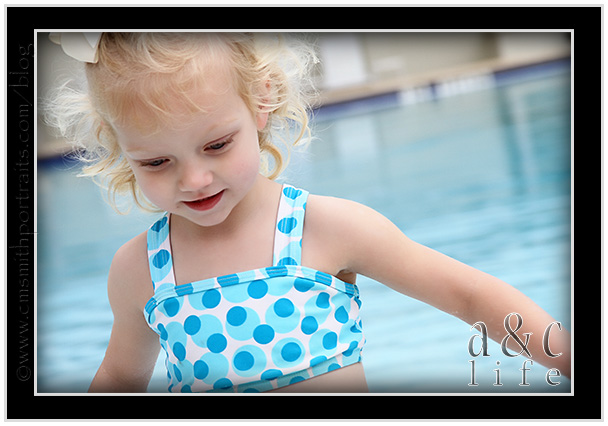 This is Clara Beth’s “please get the camera out of my face so I can get in that pool NOW” face. 🙂