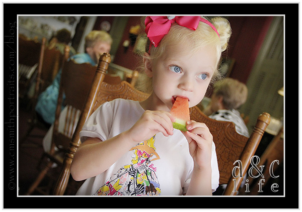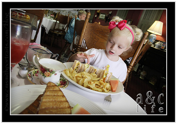 They brought her sandwich out with {gasp!} lettuce on it. This, my friends, is the pickiest eater on the planet. She DOES. NOT. DO. LETTUCE. But she didn’t fuss about it. She just politely asked Momma to remove it.