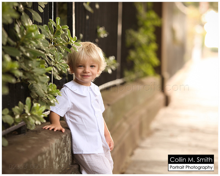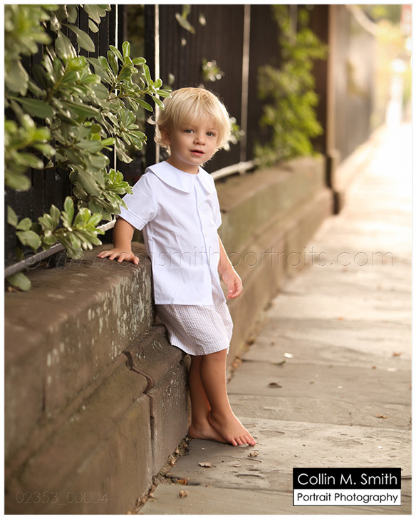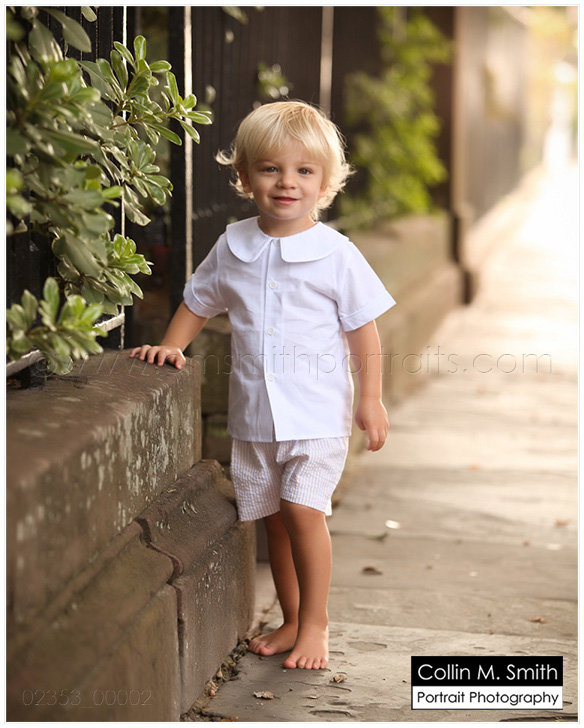 Okay, so if there’s one thing that is guaranteed to tug at my heart it’s a little Southern boy dressed just like that…as a little Southern boy. If he’s a blondie like my Mak was? Well, that’s sure to just throw me over the edge. I just might go grab him up and smooch his cheeks. Because I miss my Baby Mak. I LOVE LOVE LOVE everything about watching him grow up and I certainly don’t want to wish these days away, but I’d be lying if I didn’t say that I miss that adorable little two year old towhead that happily gave his momma smooches anytime she asked. And I know some people hate seeing baby boys dressed in seersucker and longalls and button on suits. But, are you KIDDING me?!? It’s the cutest thing ever in my opinion. My take is that they have the rest of their lives to dress like a 30 year old man. Let ’em be a baby for a few years. Are you with me People? =) Little Luke is one of those that I wanted to snatch up and smooch. Completely ADORABLE! And you know what? We had maybe nine minutes to do this session in Charleston. The rain was well on its way when we started and we were all scared it wasn’t going to happen. Because, yes, Luke is a precious little thing, but he is ALL BOY. We weren’t sure how much chasing through the streets we would have to do, and due to the rain there was no time for chasing. Let me tell you, Luke shocked us all. He was perfect. And I very rarely say that…but, really, he was perfect. We had a great time and were done just as the raindrops started to fall. Charleston is my very favorite city in the world (not that I’ve seen a lot of cities) and Collin and I are always thrilled when we get to work there. We have a Charleston Weekend coming up at the end of March and I can’t wait! All session times have been filled as of now, but I assure you we will be doing this again in the (very near) future. If you would like to be added to our Charleston list, shoot us an email! You will be contacted first before we open up appointments to the public. collin@cmsmithportraits.com And Luke, thanks for being such a fun kid! We love you, Buddy!