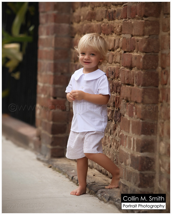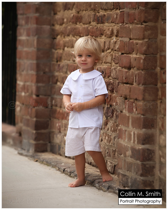 Okay, so if there’s one thing that is guaranteed to tug at my heart it’s a little Southern boy dressed just like that…as a little Southern boy. If he’s a blondie like my Mak was? Well, that’s sure to just throw me over the edge. I just might go grab him up and smooch his cheeks. Because I miss my Baby Mak. I LOVE LOVE LOVE everything about watching him grow up and I certainly don’t want to wish these days away, but I’d be lying if I didn’t say that I miss that adorable little two year old towhead that happily gave his momma smooches anytime she asked. And I know some people hate seeing baby boys dressed in seersucker and longalls and button on suits. But, are you KIDDING me?!? It’s the cutest thing ever in my opinion. My take is that they have the rest of their lives to dress like a 30 year old man. Let ’em be a baby for a few years. Are you with me People? =) Little Luke is one of those that I wanted to snatch up and smooch. Completely ADORABLE! And you know what? We had maybe nine minutes to do this session in Charleston. The rain was well on its way when we started and we were all scared it wasn’t going to happen. Because, yes, Luke is a precious little thing, but he is ALL BOY. We weren’t sure how much chasing through the streets we would have to do, and due to the rain there was no time for chasing. Let me tell you, Luke shocked us all. He was perfect. And I very rarely say that…but, really, he was perfect. We had a great time and were done just as the raindrops started to fall. Charleston is my very favorite city in the world (not that I’ve seen a lot of cities) and Collin and I are always thrilled when we get to work there. We have a Charleston Weekend coming up at the end of March and I can’t wait! All session times have been filled as of now, but I assure you we will be doing this again in the (very near) future. If you would like to be added to our Charleston list, shoot us an email! You will be contacted first before we open up appointments to the public. collin@cmsmithportraits.com And Luke, thanks for being such a fun kid! We love you, Buddy!