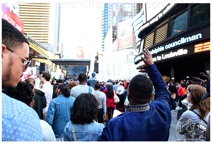 Honestly, I was a little nervous about what we would witness there on a Friday night. So far we had seen some pretty outrageous sights, and I really was kind of over it and not wanting to see the nastiness that Times Square sometimes offers. We walked up into the streets out of the subway and were greeted with hundreds of people singing praises to Jesus, praying, and reading scriptures at a concert that was being put on by a local Christian radio station! I. WAS. FLOORED. It was beautiful. Shouting “Jesus Christ is LORD!!” with hundreds of other people is not something I ever thought I’d be doing in New York!