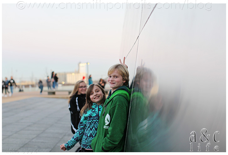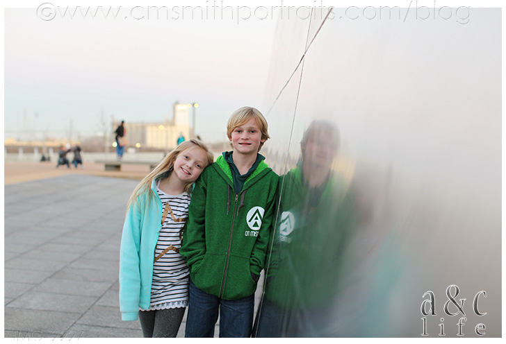 After visiting for awhile at the restaurant we headed over to The Arch. Do you know that Collin Smith lived in St. Louis practically his entire life, but never visited it until we were dating and I made him go? The kids were excited to see it in person and hoped to go up to the top, but it was undergoing renovations so we couldn’t go inside. It was still incredible, though!