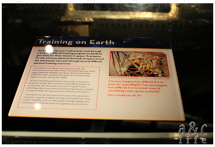 Clara Beth learned about the space missions in science this year, so this portion of the museum was incredible. It was amazing to see the small spaces that the astronauts were in.