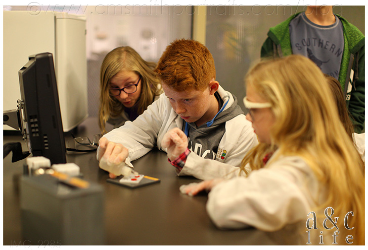 Then they moved on to a crime scene lab where they used clues and tools to solve criminal cases.