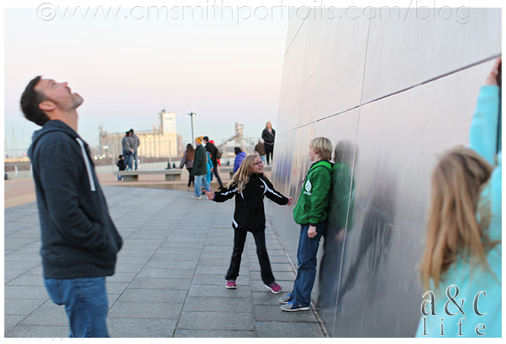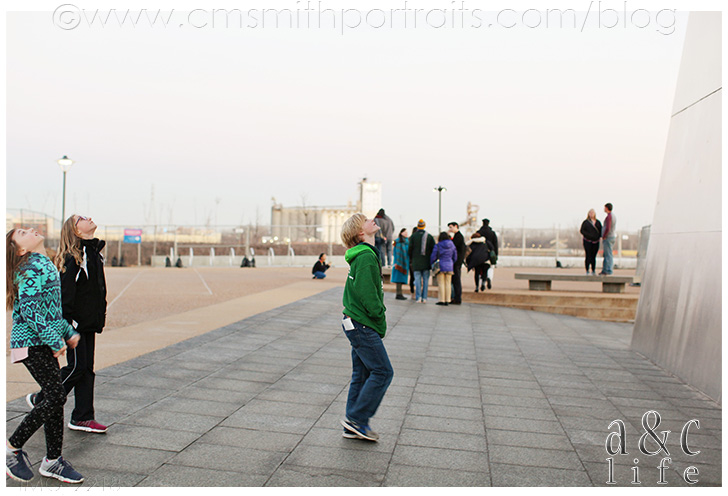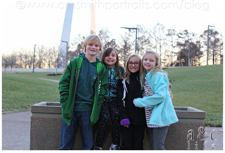 After visiting for awhile at the restaurant we headed over to The Arch. Do you know that Collin Smith lived in St. Louis practically his entire life, but never visited it until we were dating and I made him go? The kids were excited to see it in person and hoped to go up to the top, but it was undergoing renovations so we couldn’t go inside. It was still incredible, though!