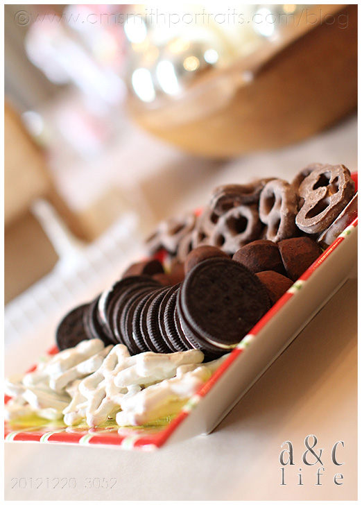 Tate uses the cookie platter as his personal plate. Take a bite, put it back. Choose another, put that one back. And so on…