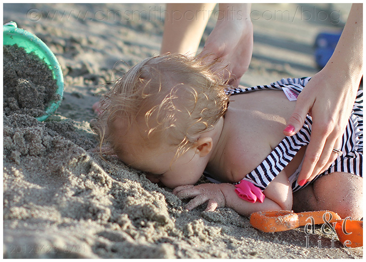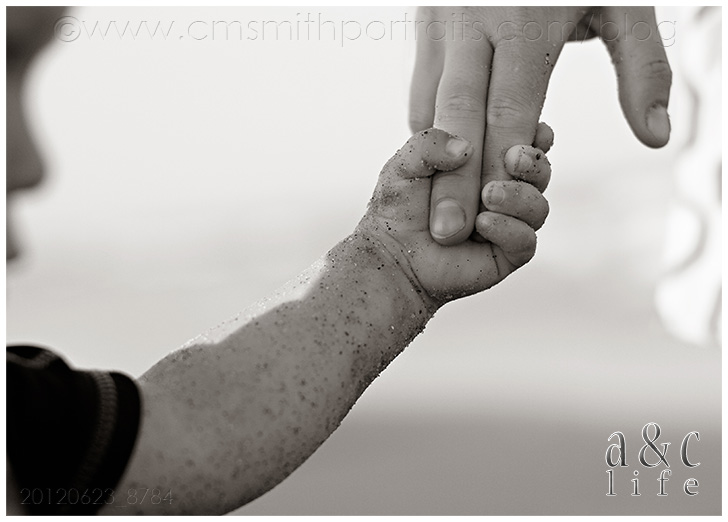 Awww…nothing sweeter than a sandy almost two year old baby boy hand wrapping around his momma’s fingers.