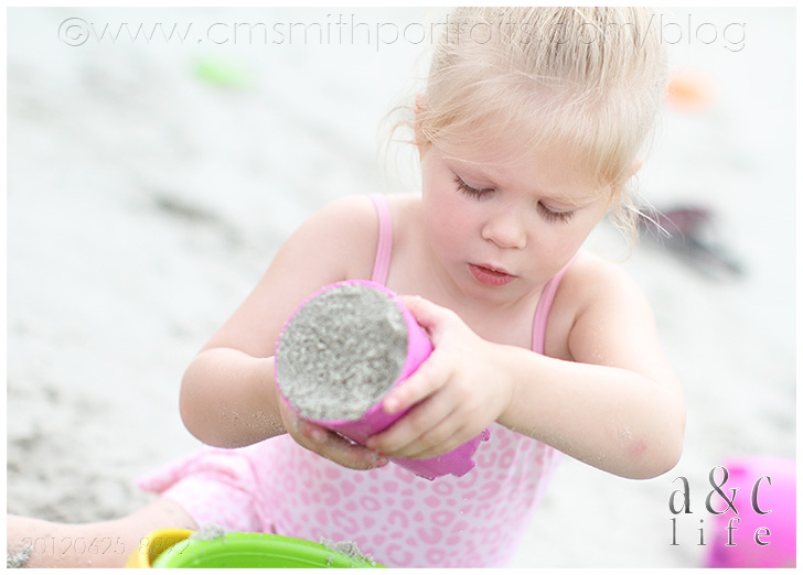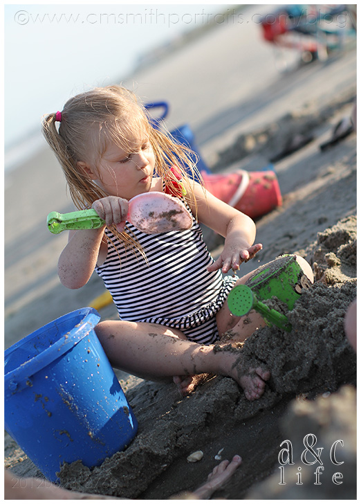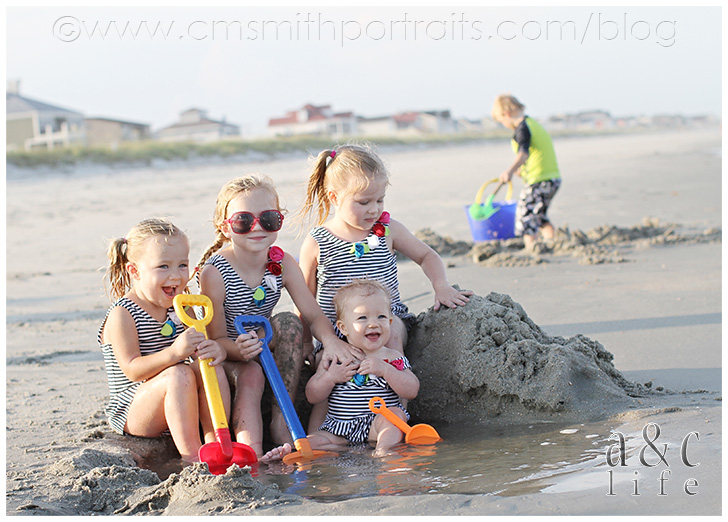 There was a ton of sand castle building and running back and forth from the ocean with a watering can by the three big girls.