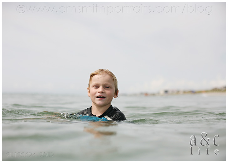 And we’ll end this post with a whole slew of photos of our favorite thing about the beach…playing on the beach. All day long, this is what we do. With the occasional boat trip thrown in there. Collin got a fun new underwater housing for his camera, and I love these pictures of the kids out in the water!