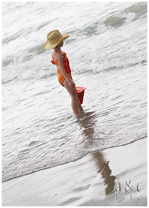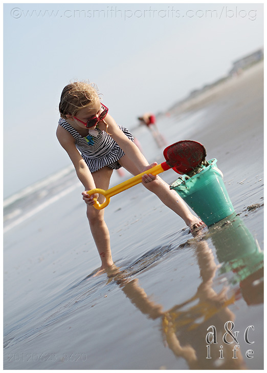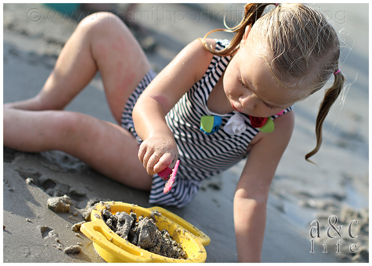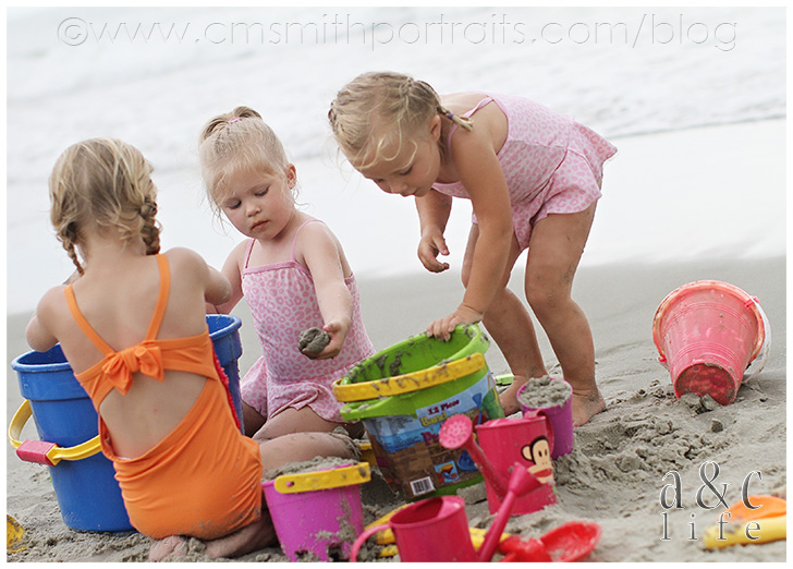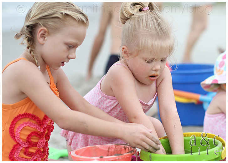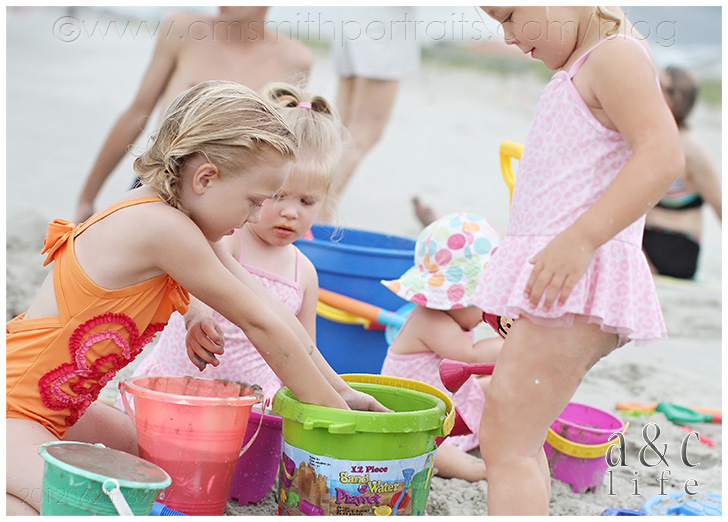 There was a ton of sand castle building and running back and forth from the ocean with a watering can by the three big girls.