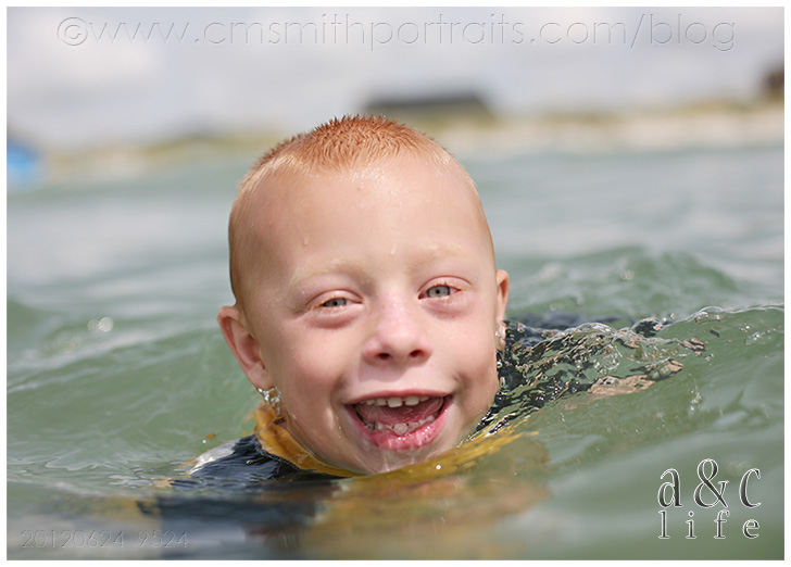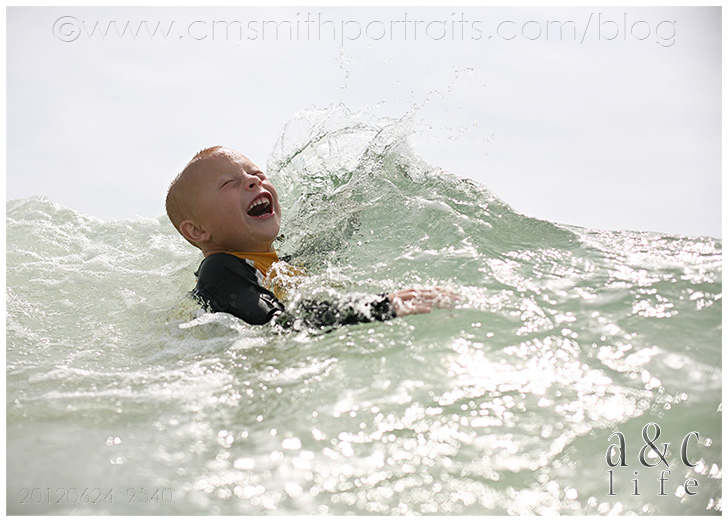 And we’ll end this post with a whole slew of photos of our favorite thing about the beach…playing on the beach. All day long, this is what we do. With the occasional boat trip thrown in there. Collin got a fun new underwater housing for his camera, and I love these pictures of the kids out in the water!