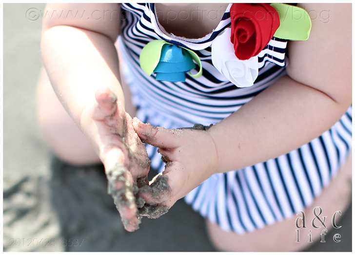 Awww…nothing sweeter than a sandy almost two year old baby boy hand wrapping around his momma’s fingers.