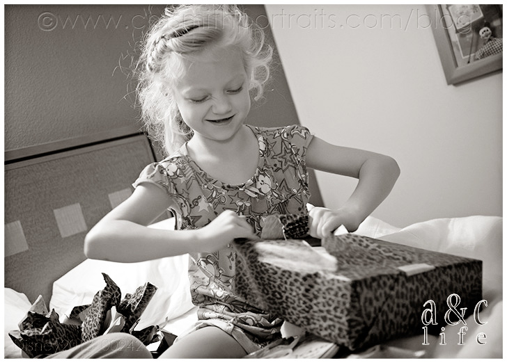 A little present opening in the hotel. Our girl asked for one thing for her birthday. Paper. Plain white printer paper. I love her for that.