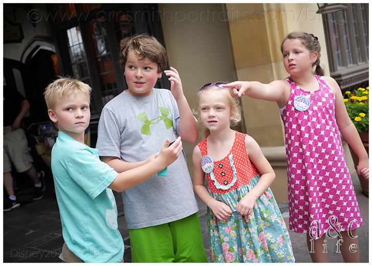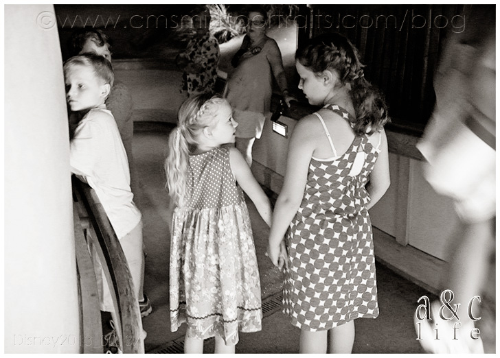 And soon, Amy was off of work and able to play. Funny story. It started raining and we headed for the Haunted Mansion since it’s inside. Amy was going to ride with Raelyn and Clara Beth. Just as they were boarding their doom buggy, the ride attendant grabbed Amy’s arm and said “Excuse me, you three need to have an adult ride with you.” HAHAHAHAHA! In the end he let the three little girls ride together. 😉